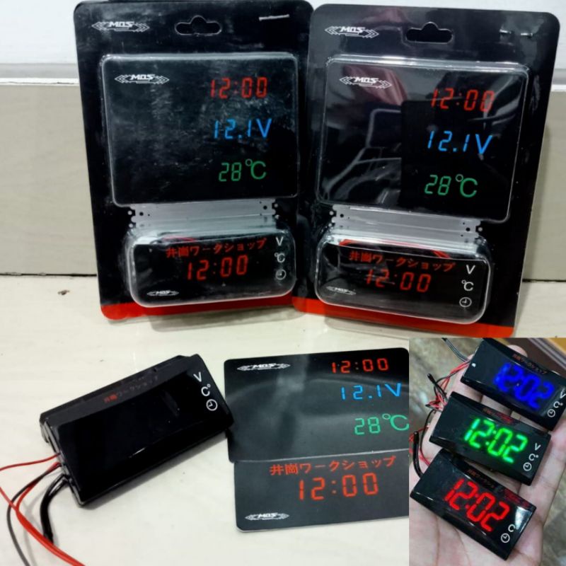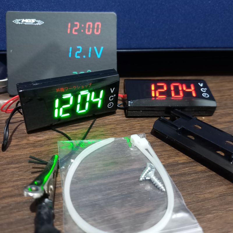 VOLTMETER DIGITAL AKI 3 IN 1 VOLTMETER JAM DIGITAL TEMPERATUR UNIVERSAL