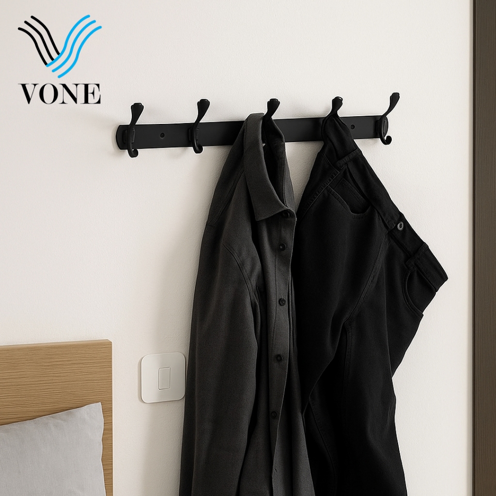 VONE Gantungan Baju Handuk Cantolan Kamar Mandi Hook 5 Kait Stainless Black