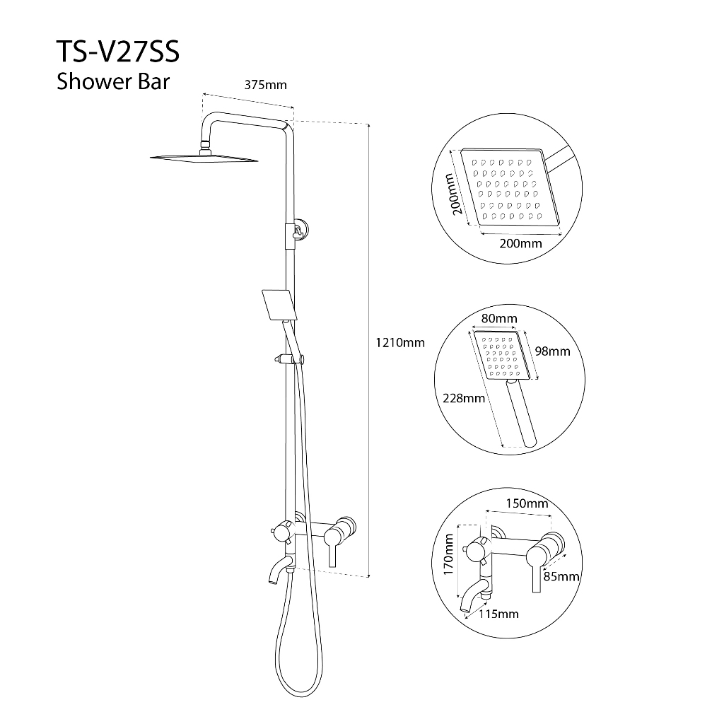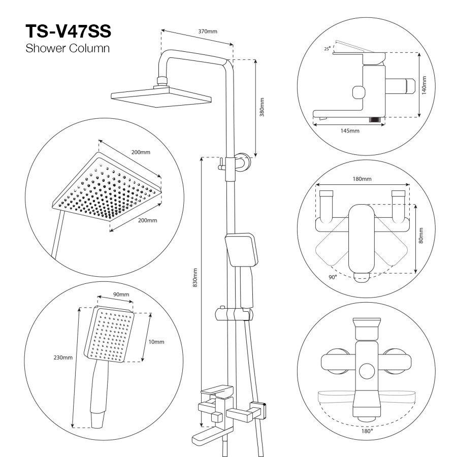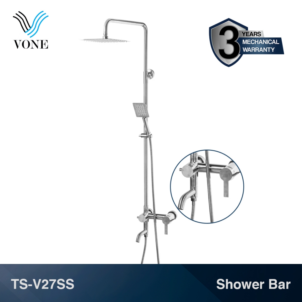 VONE Shower Set Kamar Mandi Kran Panas Dingin Shower Tiang Komplit Chrome Stainless Black