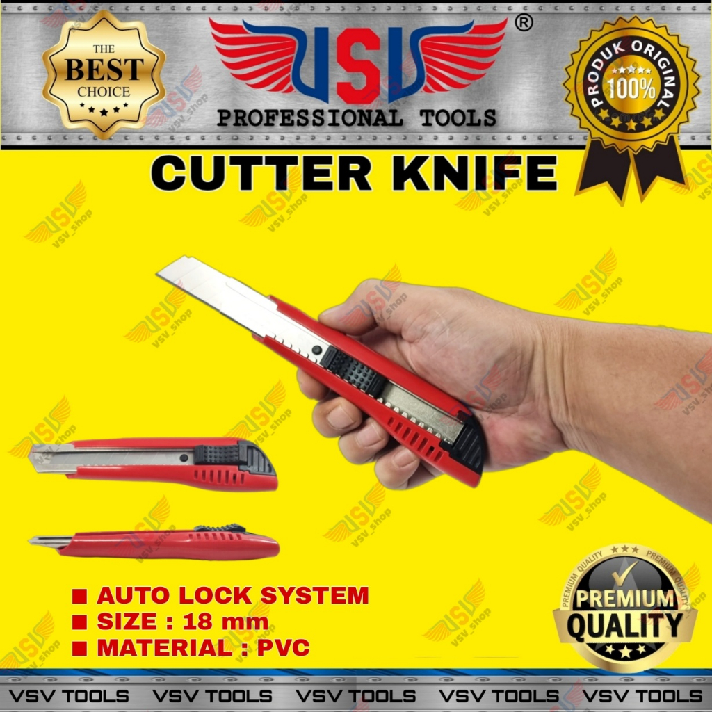 VSV Pisau Cutter Besar Otomatis 18mm Cutter Knife Auto Lock HS-01