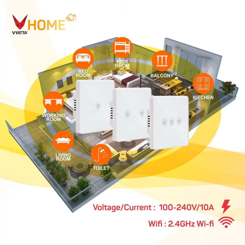 [CUCI GUDANG] VYATTA VHOME SMART WALL SWITCH SAKLAR PINTAR 1 2 3 GANG EU SMART HOME