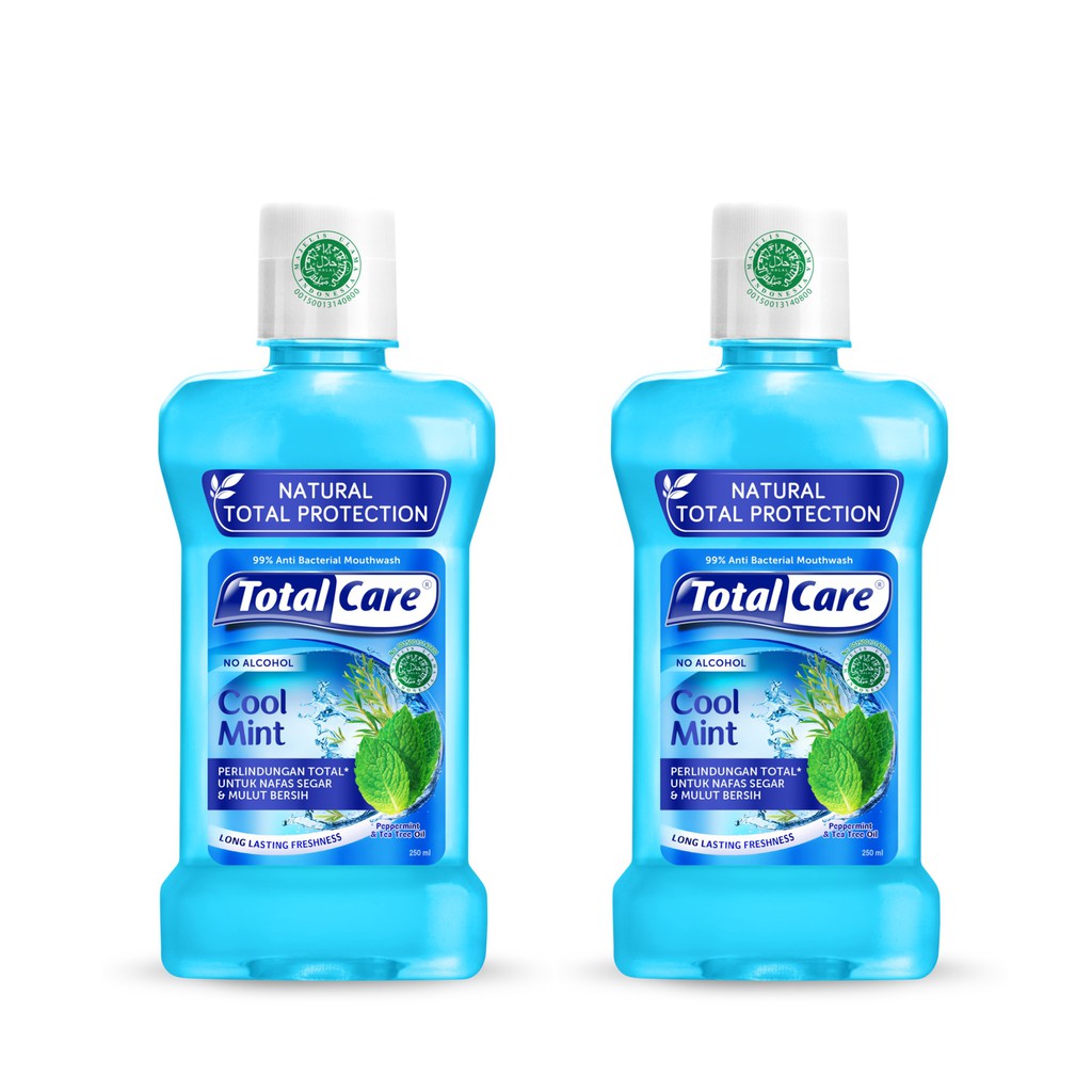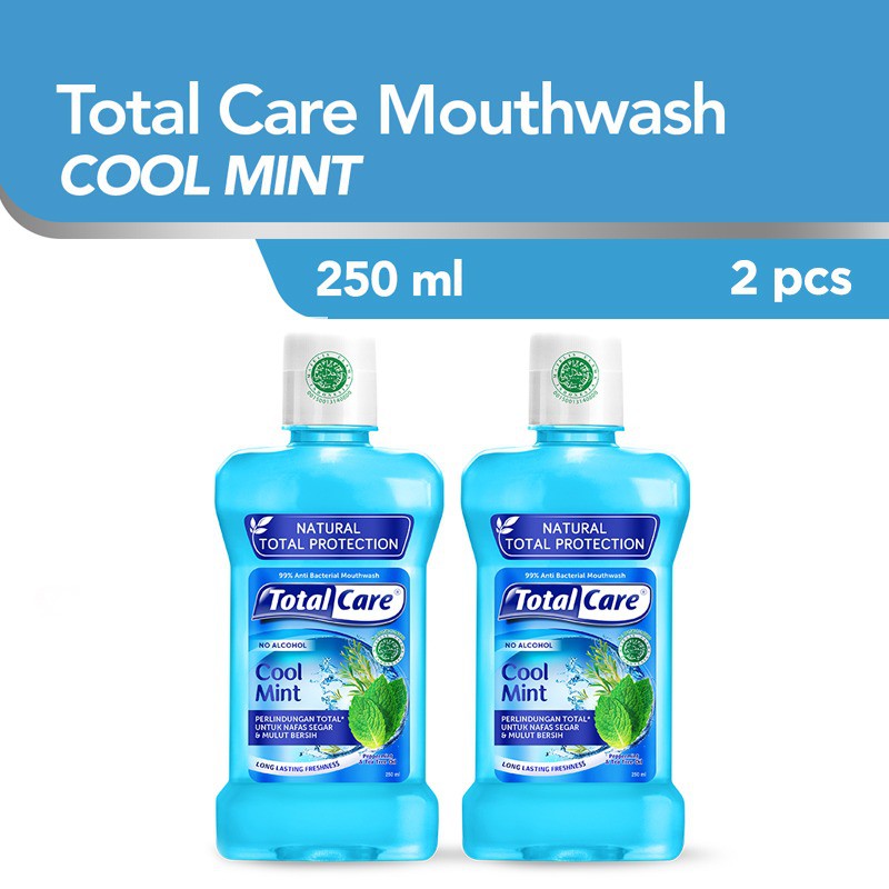 Total Care Mouthwash Cool Mint 250ml (2pcs) - Obat Kumur Antiseptik Dingin Segar Halal Tanpa Alkohol isi 2 (Exp : 05.2028)