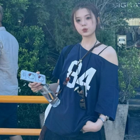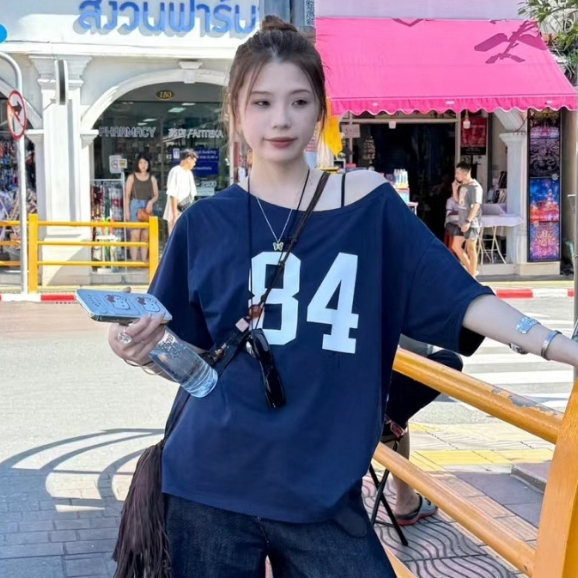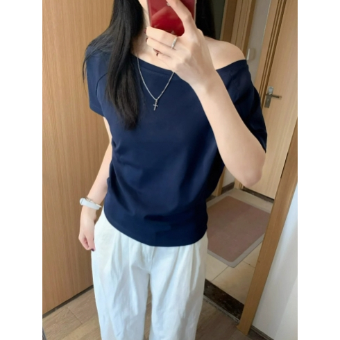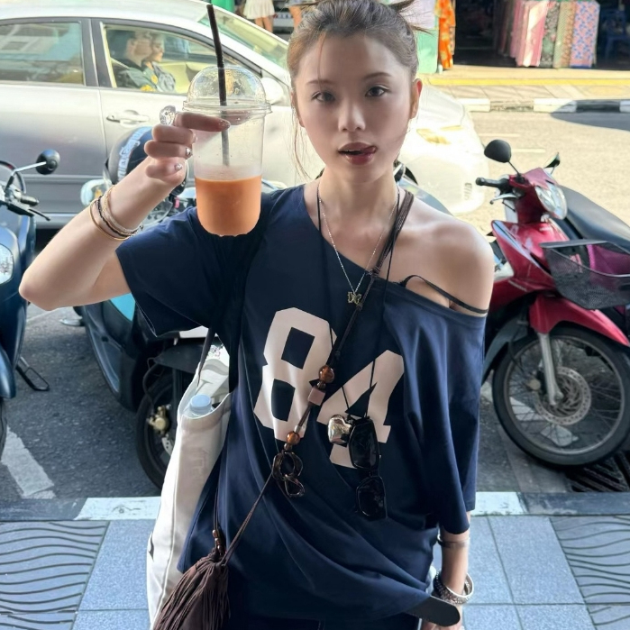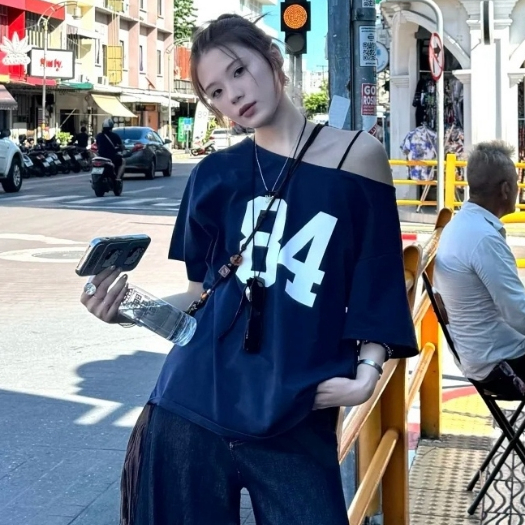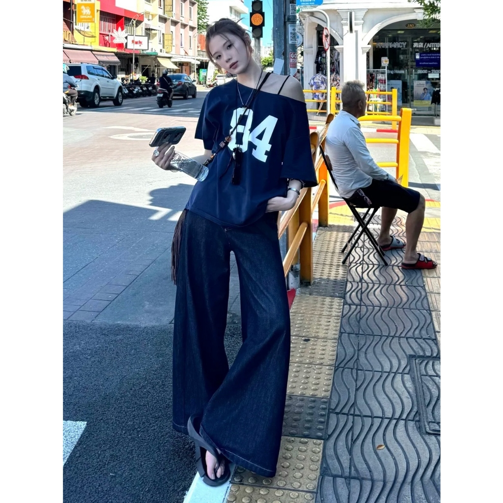 2TOYOUNG Biru laut 84 Tshirt Y2K Asymmetrical Offshoulder Top AHS Streetwear Stockholm Vintage Retro Aesthetic