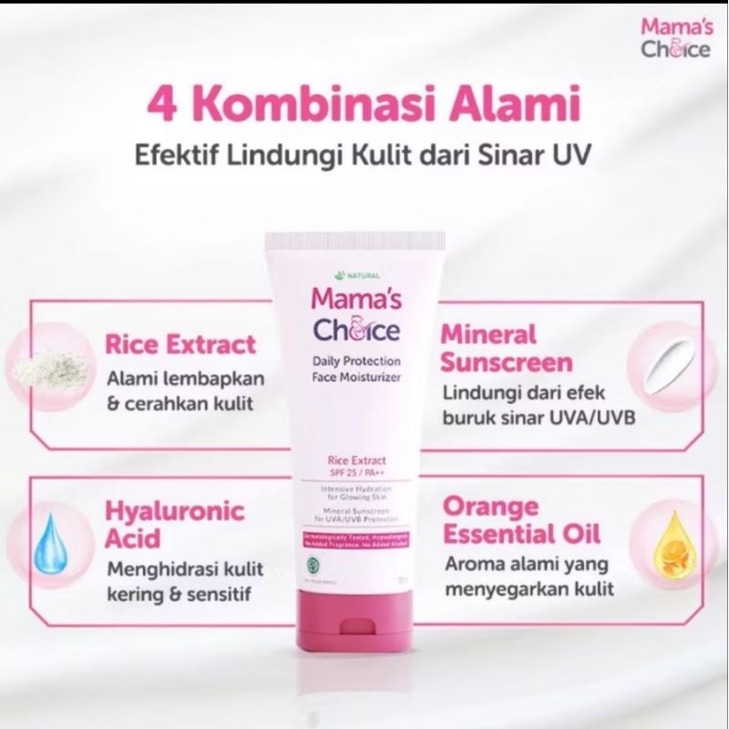 DAILY PROTECTION FACE MOISTURIZER SPF 20 PA++ MAMA CHOICE| SUNSCREEN IBU HAMIL DAN MENYUSUI-30ML