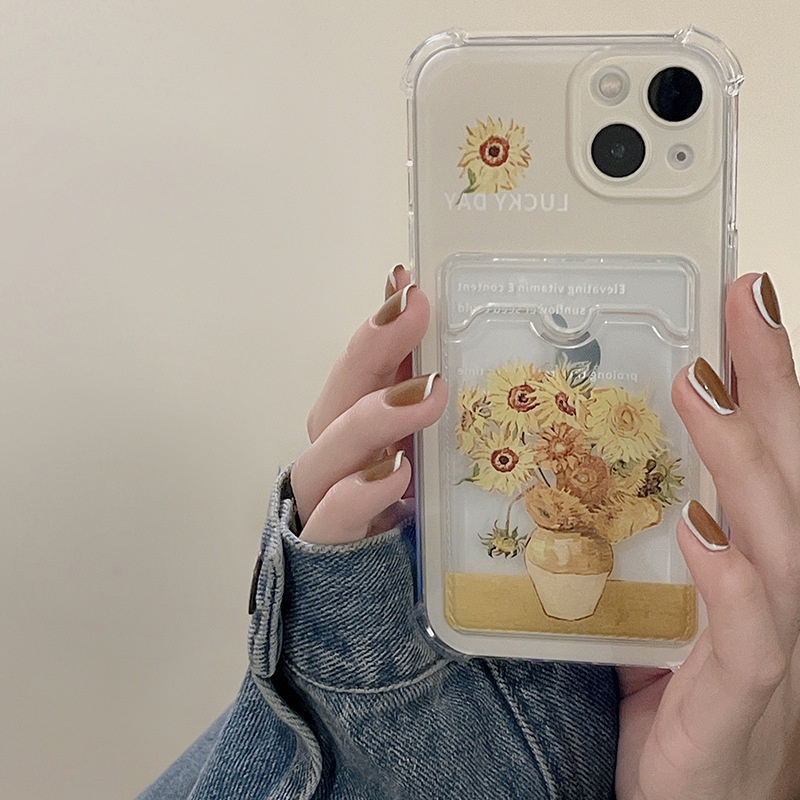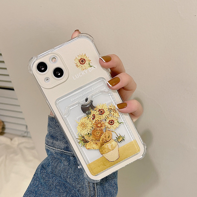 Van Gogh Aesthetic Bunga Matahari Card Holder Casing Infinix Hot 60i 60 Pro Plus Smart 10 Plus Smart 9 Hot 50I 50 4G 5G 40I Note 40 Pro 4G 5G 8 Pro Plus Kb Case