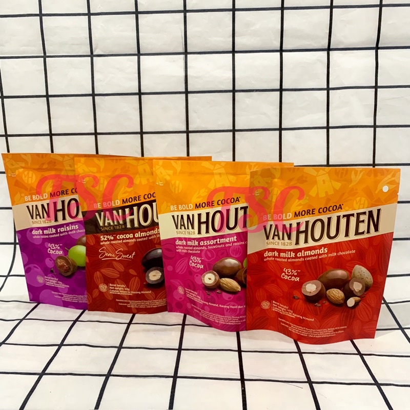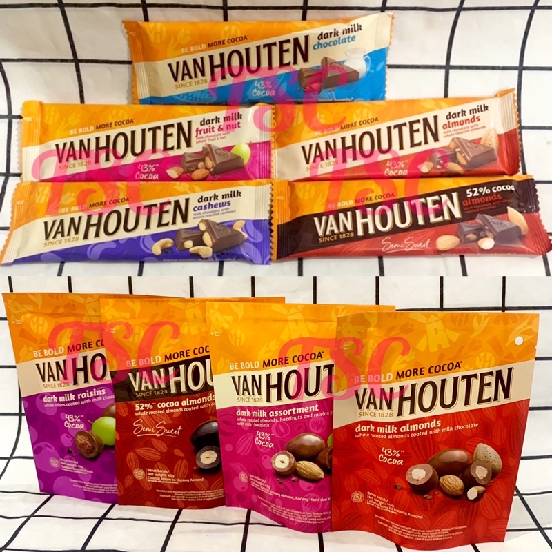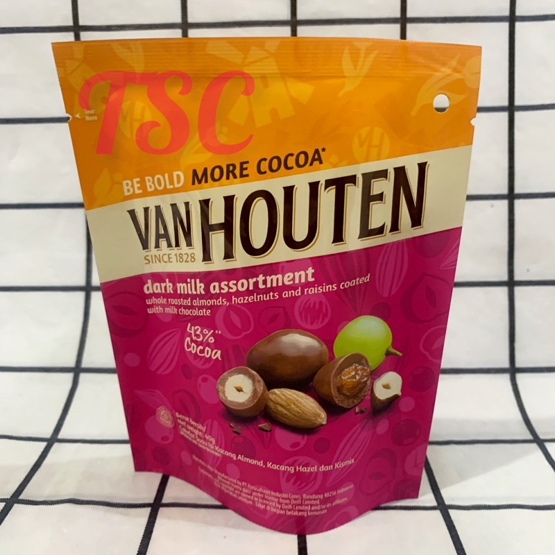 Van Houten Chocolate 40gr / Dark Milk /Chocolate / Almonds / 52% Cocoa Almond / Cashews / Fruit & Nut / VanHouten / Cokelat / Raisin / Van Houten / Whole Roasted / bulat / bola / cokelat isi Kacang / almond / cashew / raisin