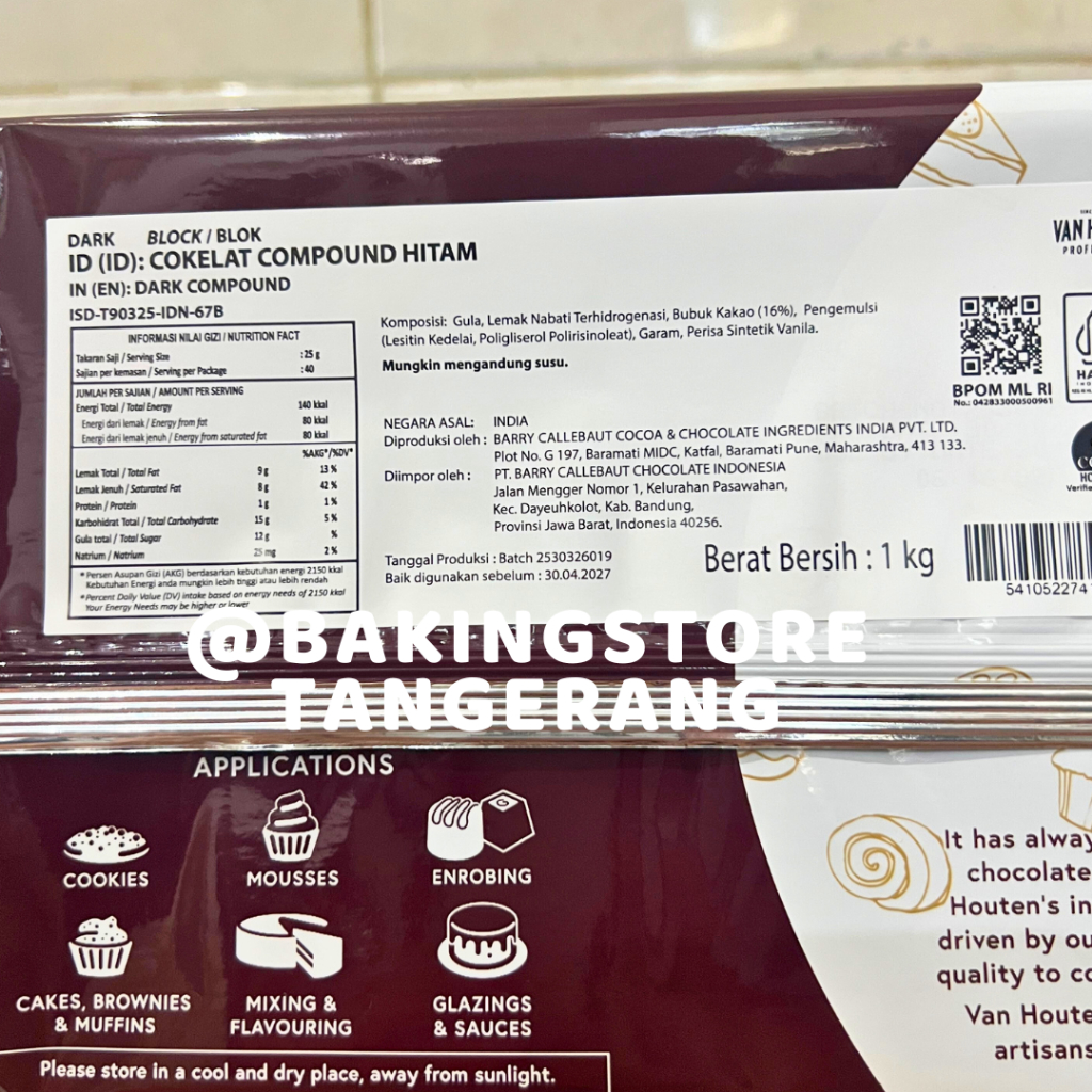 Van Houten Dark Chocolate Compound 1 kg | Dark Cokelat Block Classic