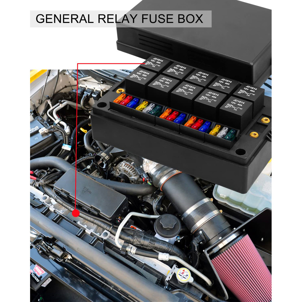 Vareraaa Universal Waterproof Relay Box, 12V Fuse Relay Box 15 Slots With 50 Relay Terminals 30 Fuse Terminals For Cars And Trucks
