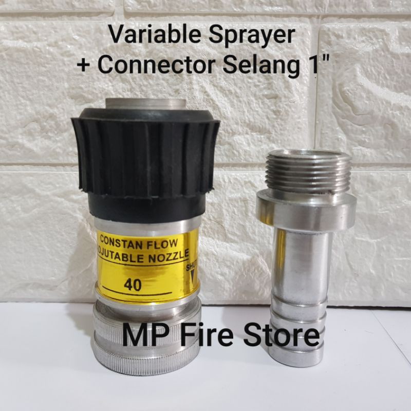 Variable Nozzle Spray Nuzzle Sprayer Pemadam 1 Inch Plus Connector Hose Selang