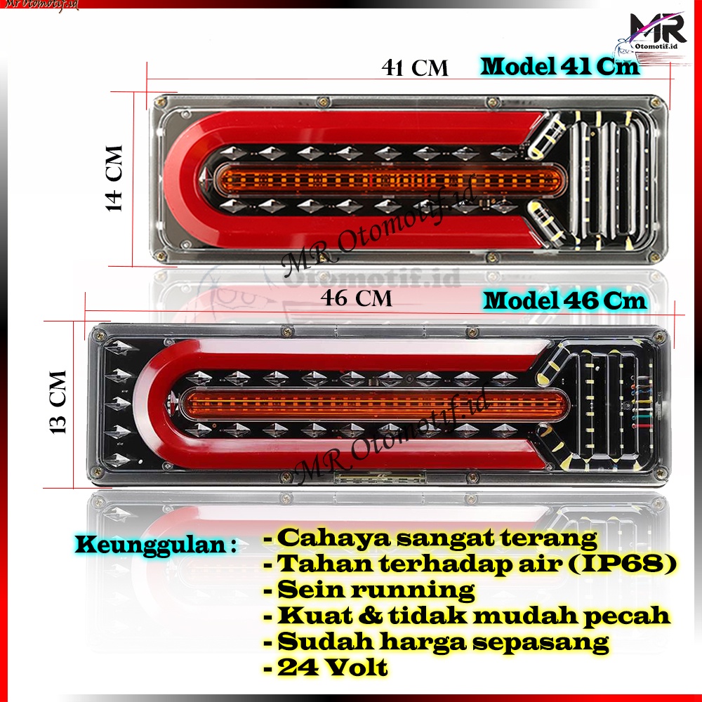 Variasi Lampu Stoplamp Stop Lamp Rem LED Belakang Model C FN186 Mobil Truk Truck Trailer Tronton Gandeng Canter Fuso Elf Traga Engkel 24 V Volt 41 46 Cm