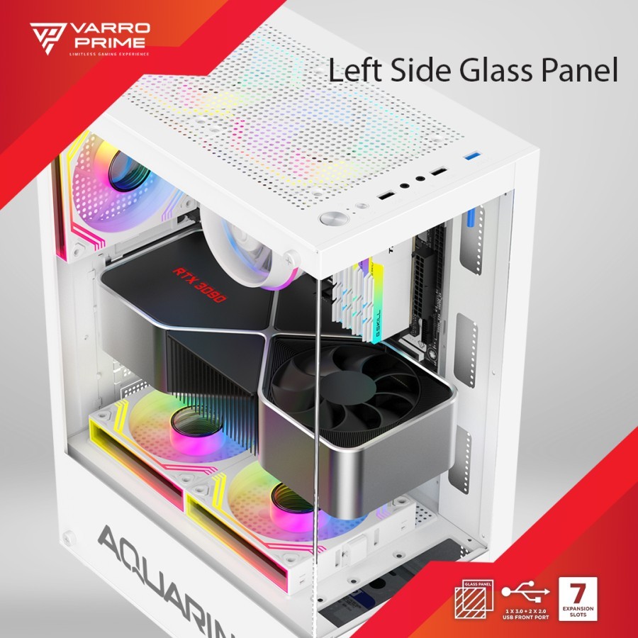 Varro PRIME AQUARINE Casing Gaming Transparan WHITE ATX