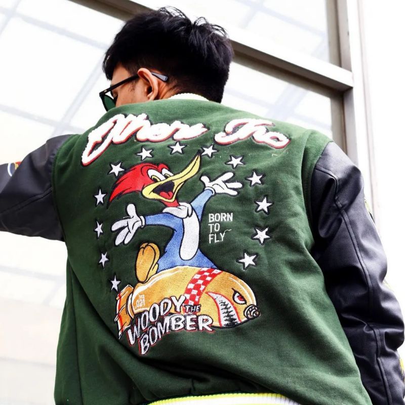 Varsity Jacket Woody Bomber Attack Green Bordir Original Jaket Varsity Pria Wanita Kulit Jaket Baseball