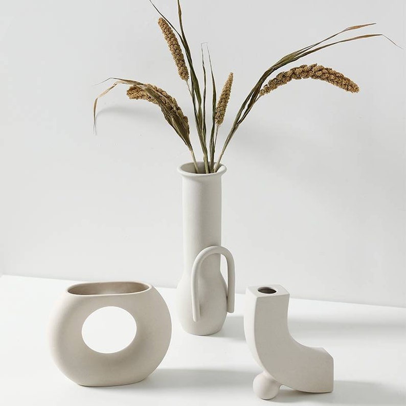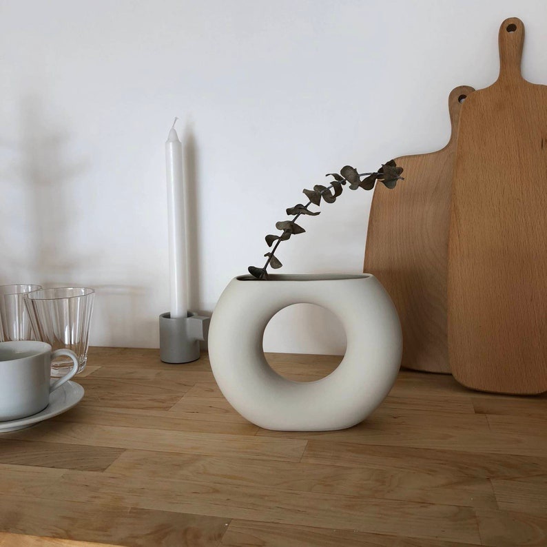 Vas Bunga Aesthetic Keramik Embryo White Gray / Vase Bunga / Dekorasi / Pottery / Vas Bunga Nordic - Odessa Home