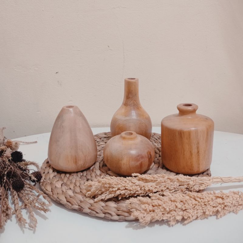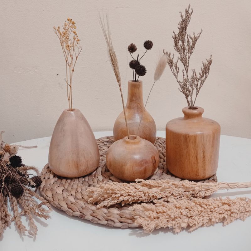 Vas Bunga Kayu Aesthetic / Vas Bunga Kering / Vas Kayu Mahoni / Dekorasi Estetik