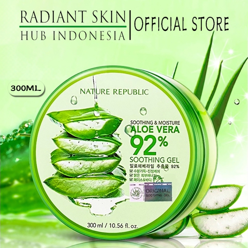 Nature Republic Soothing & Moisturizing 92% Aloe Vera Gel 300ml - Perawatan Multifungsi, Pelembaban Segar