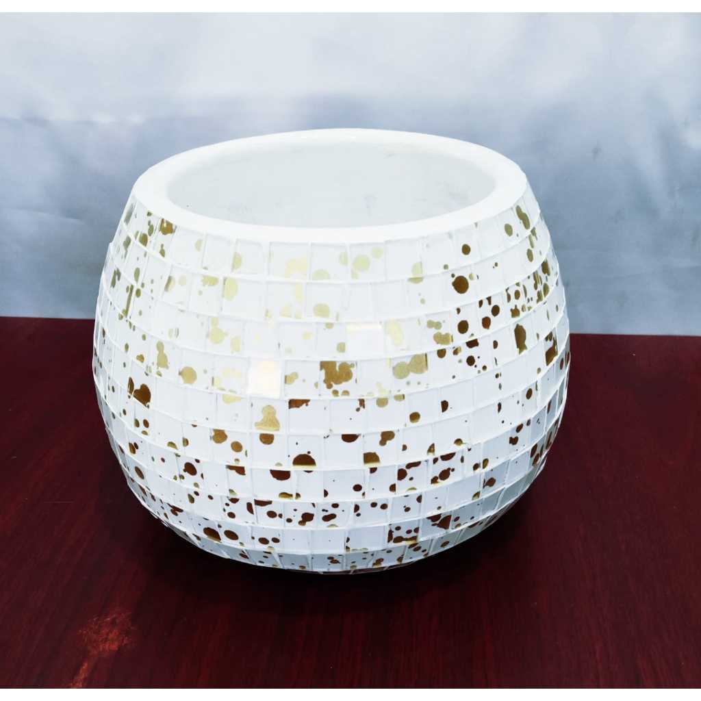 Vase Mozaik Kaca Putih Emas ( Termasuk Bubble Wrap 3 Meter )