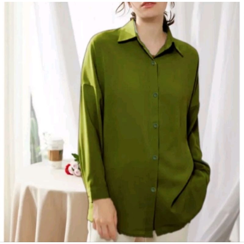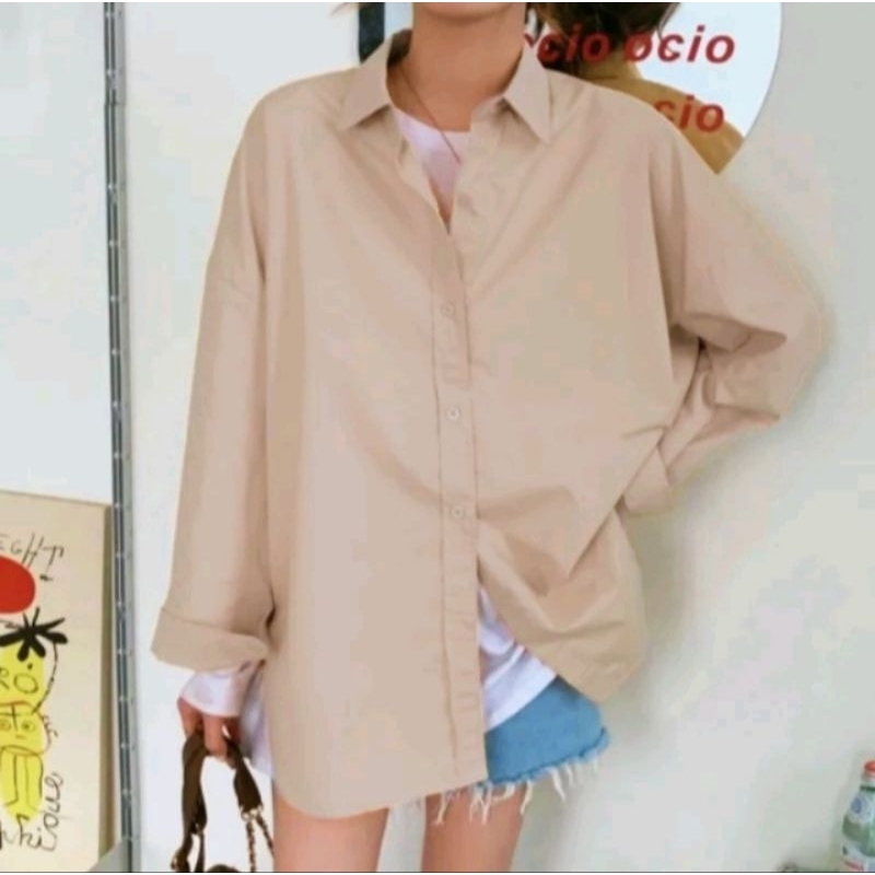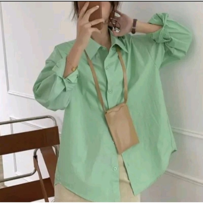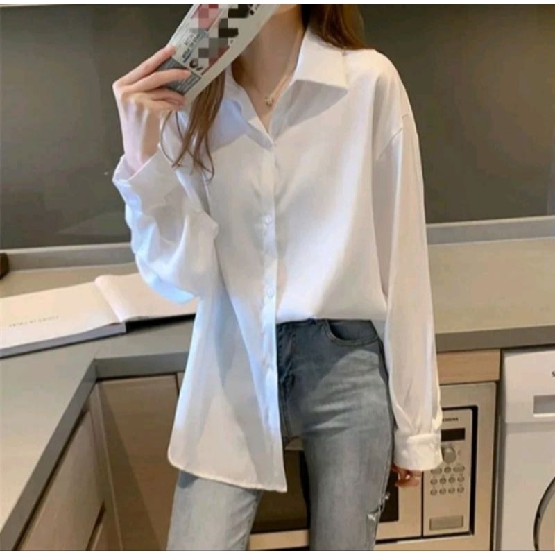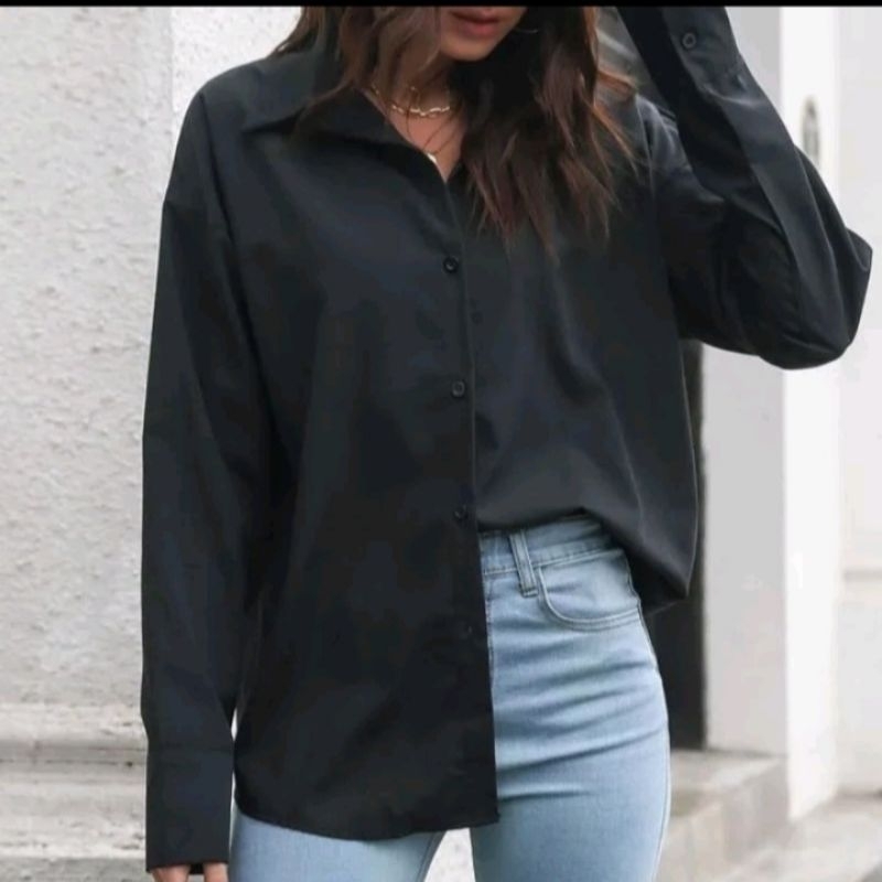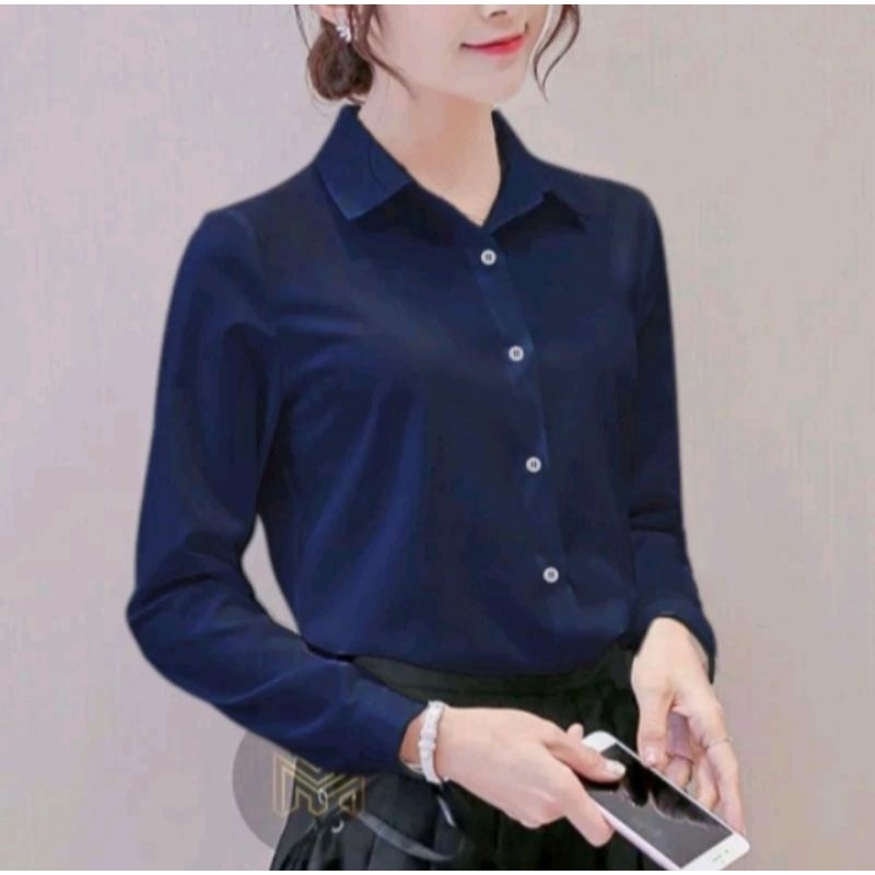 Kemeja Wanita Katun Basic Lengan Panjang Kasual hitam Putih Navy Biru Muda Atasan wanita Kerja