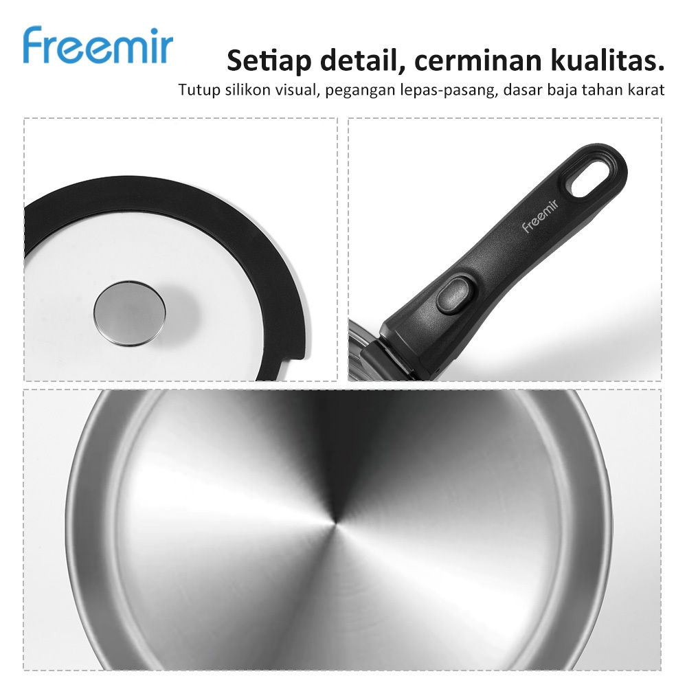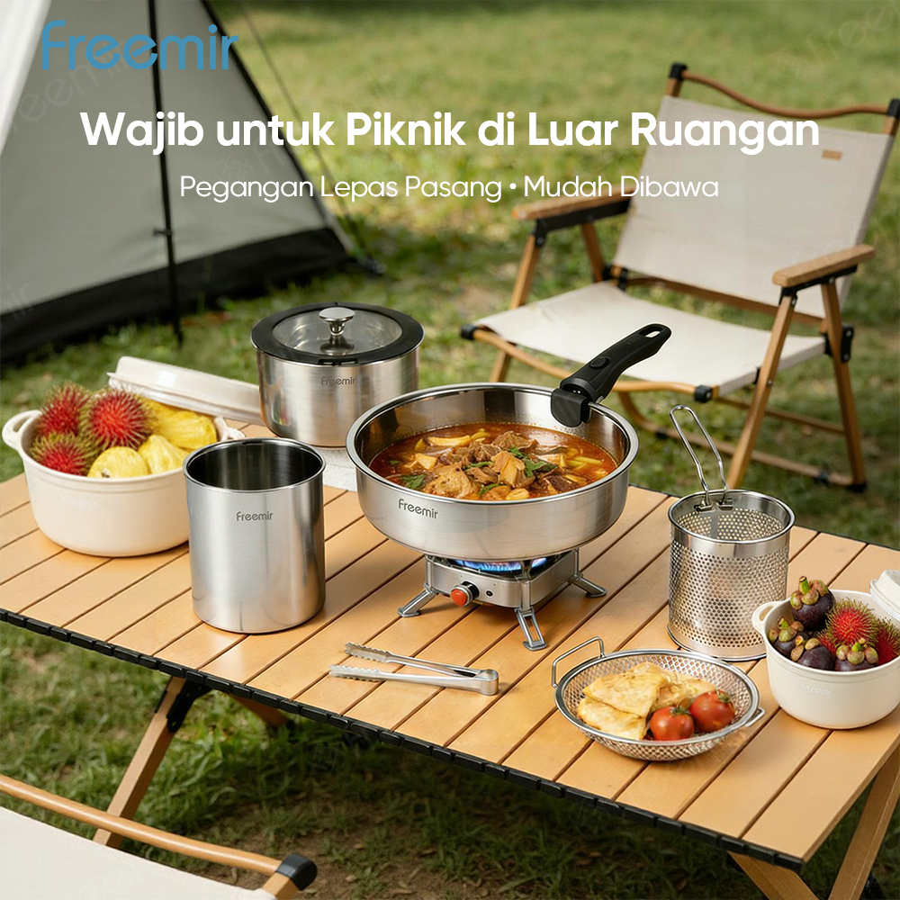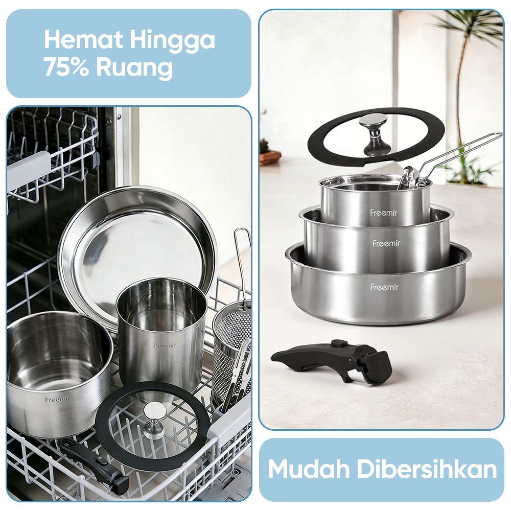 freemir Set 8 Wajan Panci Stainless Steel Perlengkapan Dapur Sehat Bonus Capitan dan Saringan