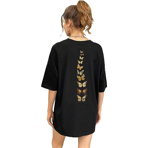 Kaos SOLY HUX Women's Oversized T Shirts Graphic Tees Vintage Butterfly Print Summer Tops Half Sleeve Shirt - Kaos dewasa - Kaos Pria - Kaos Wanita - Kaos Cowok - Kaos Cewek - Baju Kaos