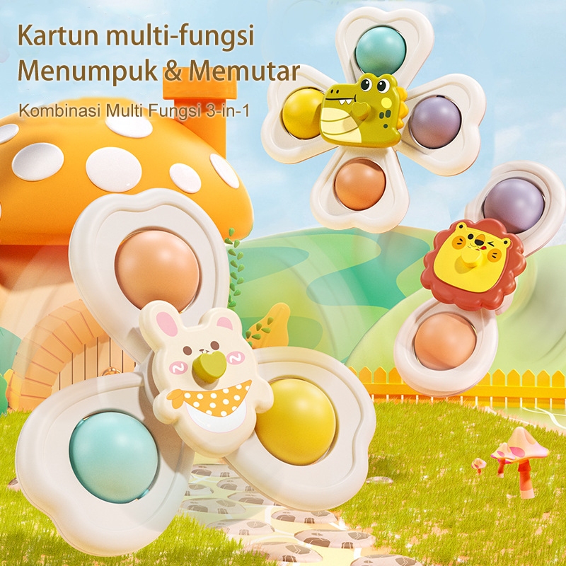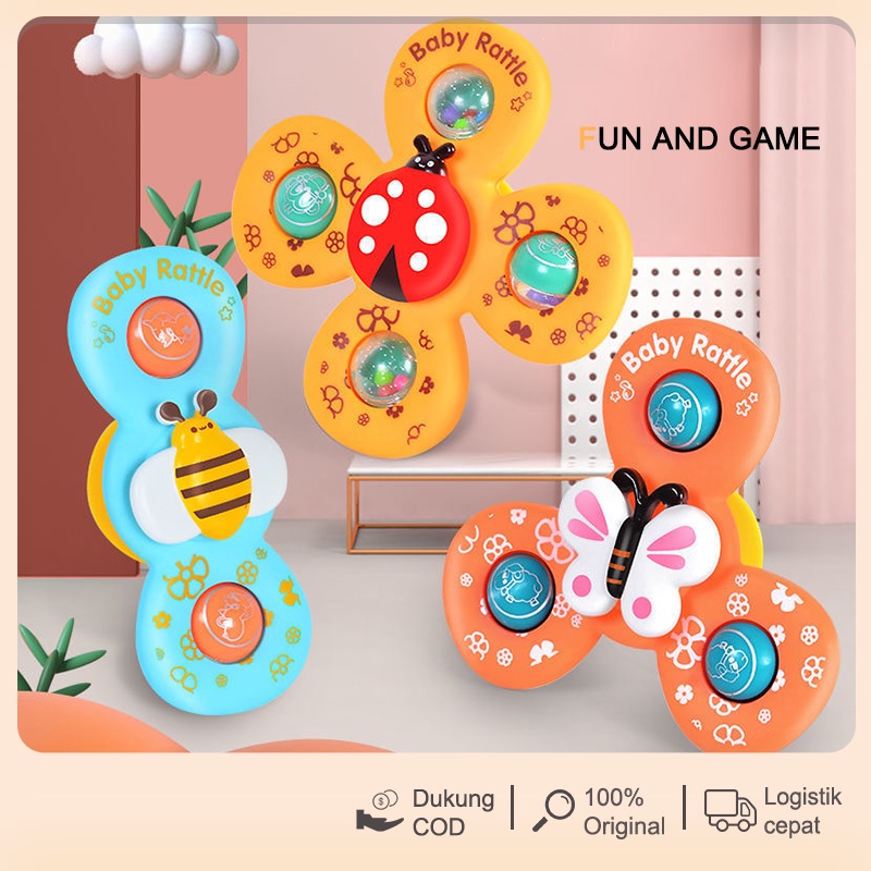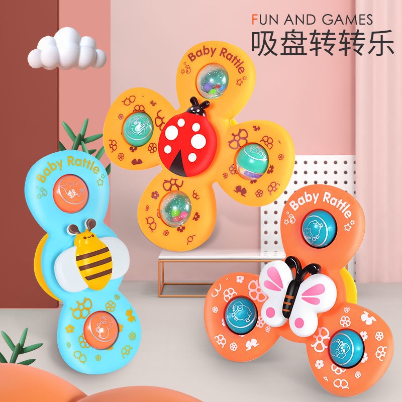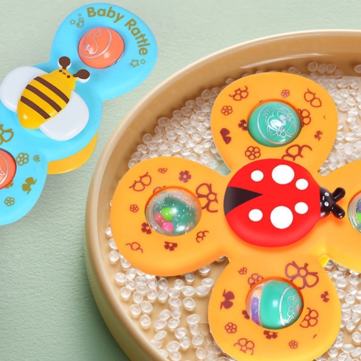 [COD] 3PCS/Set Suckers spin mainan anak-anak bayi pendidikan awal pendidikan bayi 0-3 tahun/IQ Angel 3in1 Spinner Motif Serangga