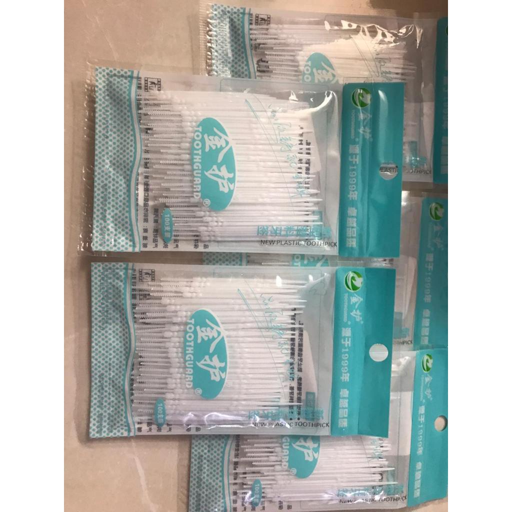 Tusuk gigi 2 sisi model sikat / Tooth pick plastik 2 arah / Tusuk gigi untuk behel Interdental