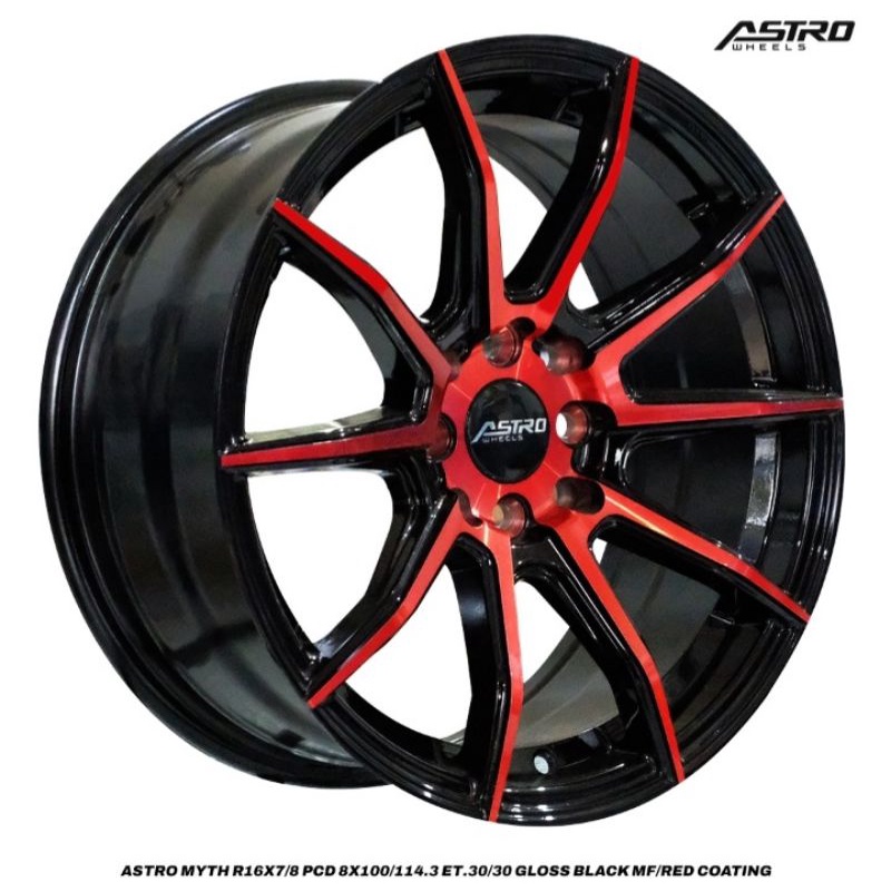 Velg Mobil ASTRO Wheels MYTH R16x7.0-8.0 Pcd 8x100-114.3 ET30-30 Gloss Black MF Red Coating
