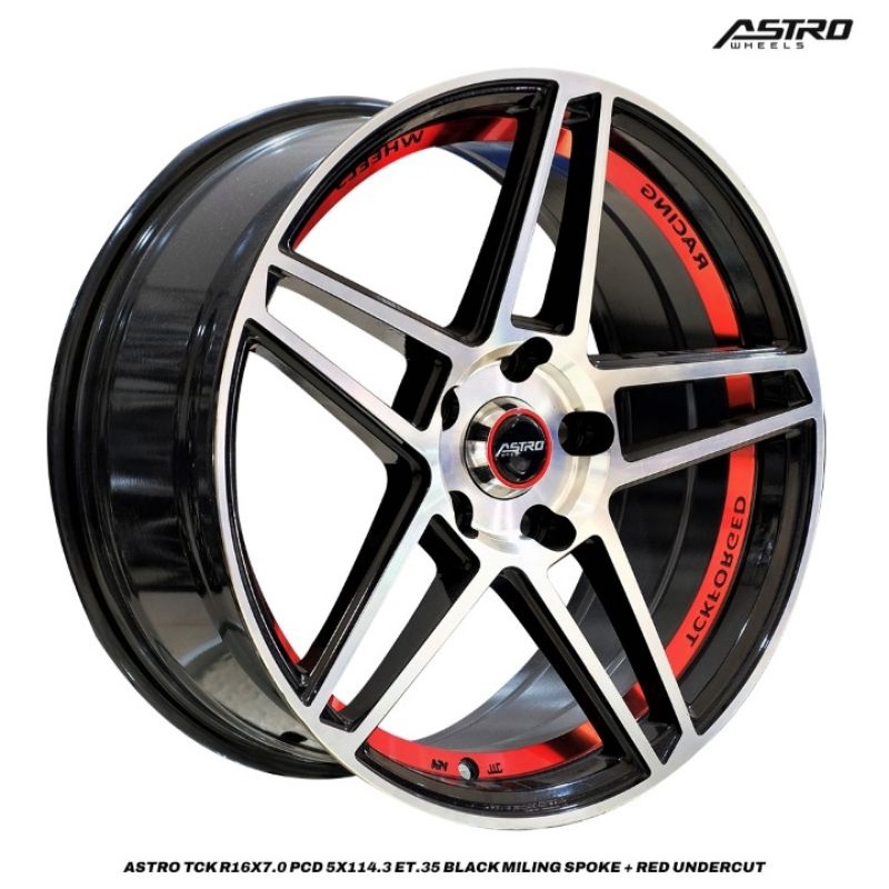 Velg Mobil ASTRO Wheels TCK R16x7.0 Pcd 5x114.3 ET35 Black Milling Spoke Red Undercut