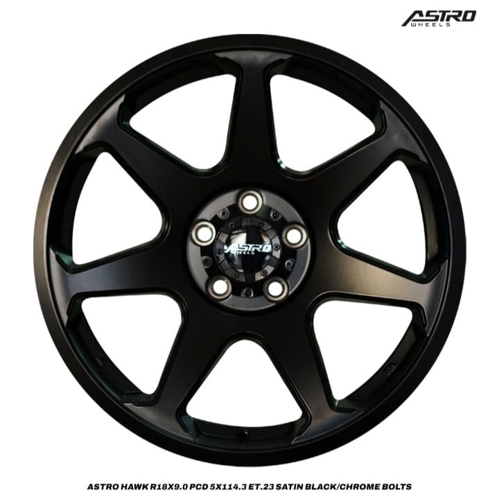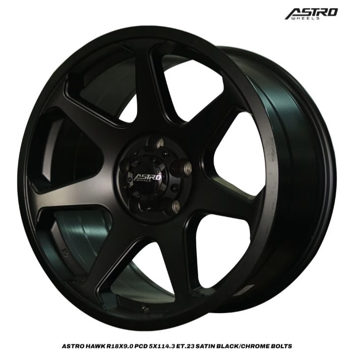 Velg Mobil Astro Hawk R18x9.0 Pcd 5x114.3 ET23 Satin Black Chrome Bolt