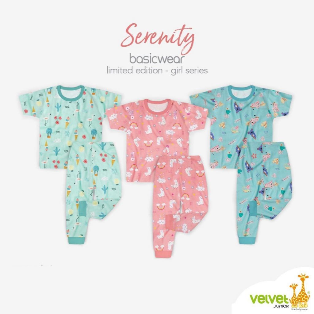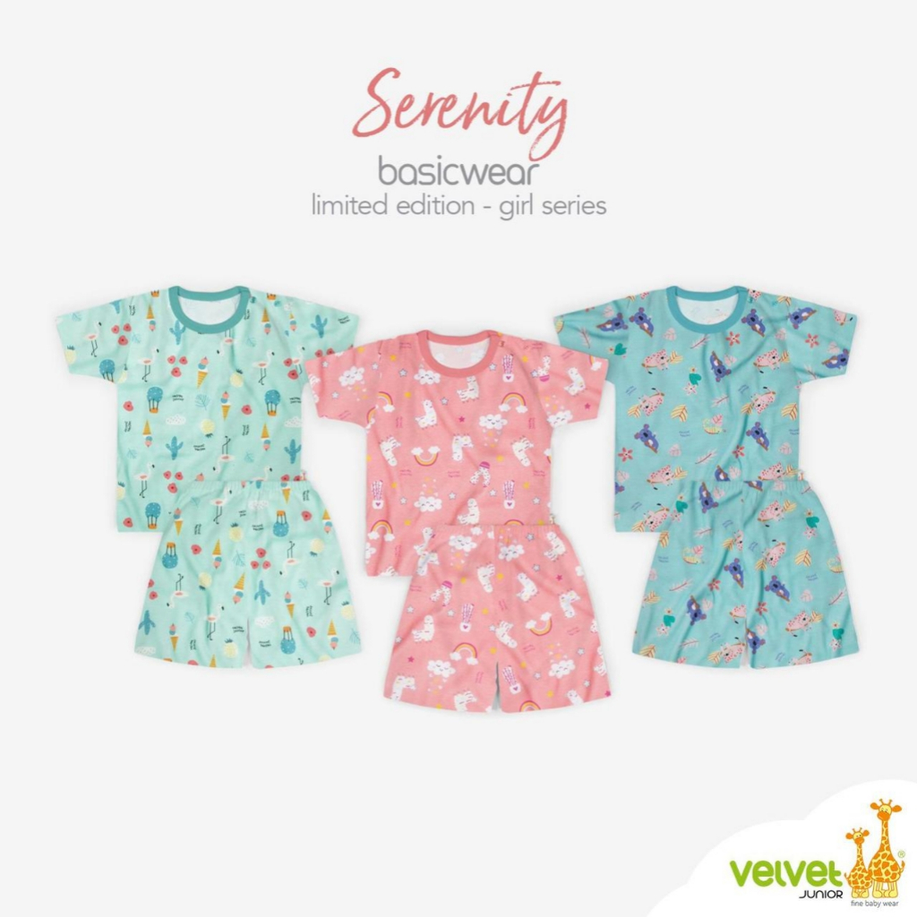 Velvet Junior 3 stel GRIL size S M L LB XL . Setelan panjang , setelan pendek , setelan cpr