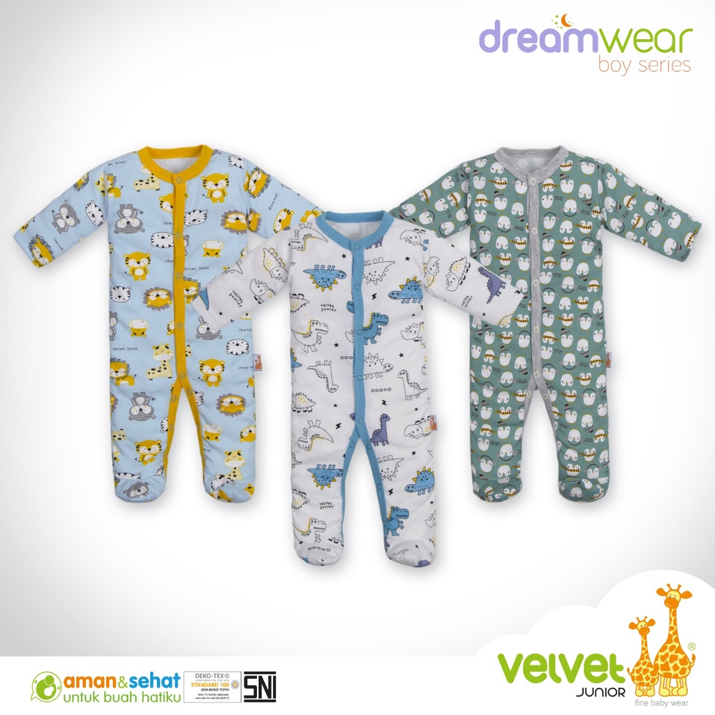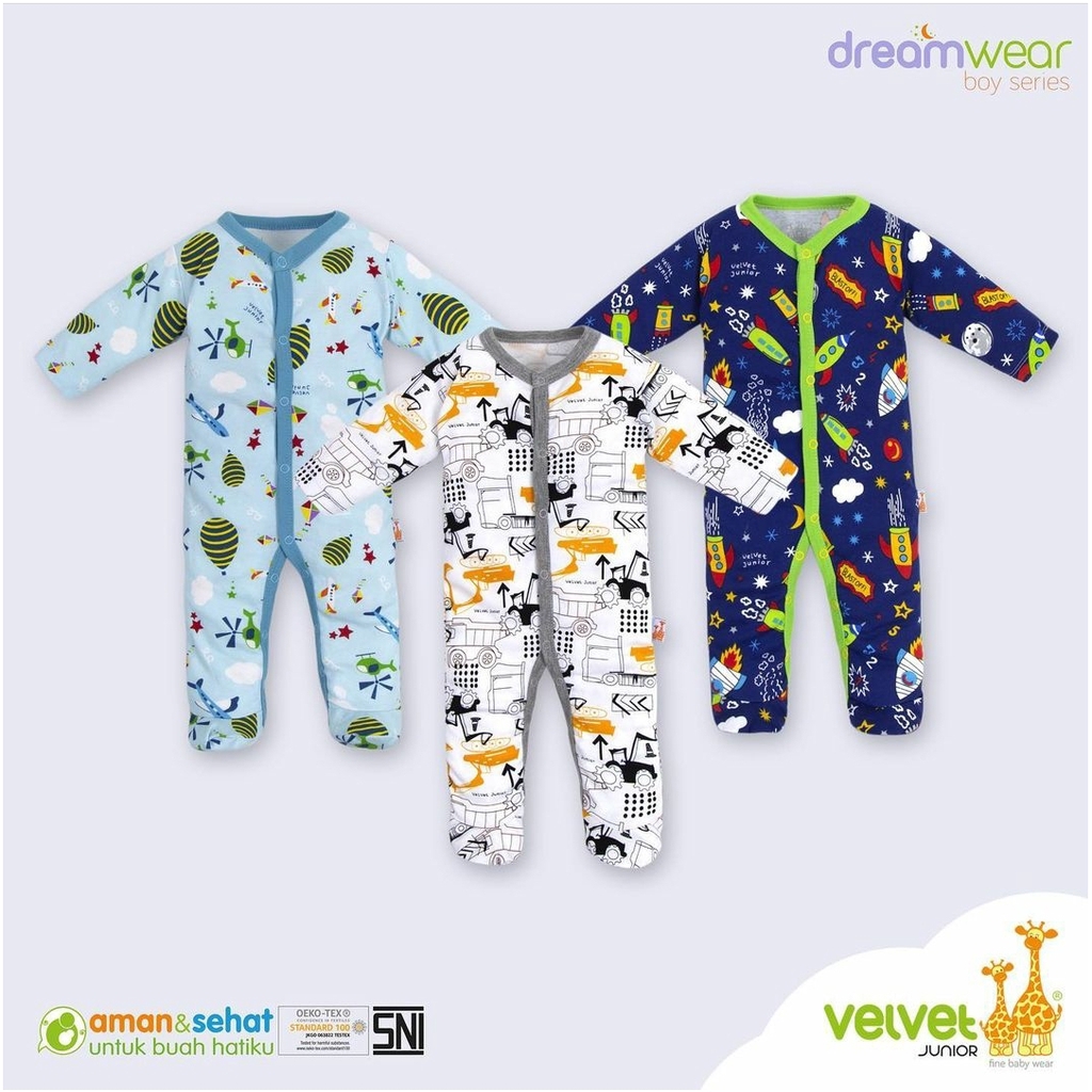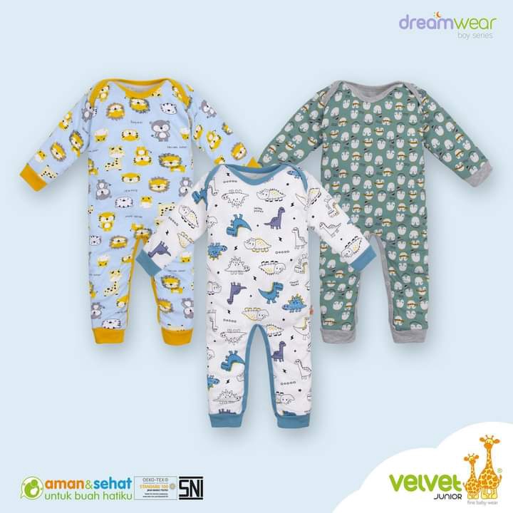Velvet Junior Jumper Bayi Tutup Kaki 3 Pcs Motif Acak Boy - Velvet Dreamwear Sleepsuit