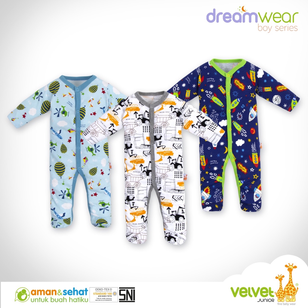Velvet Junior Jumper Bayi Tutup Kaki 3 Pcs Motif Acak Boy - Velvet Dreamwear Sleepsuit marvels