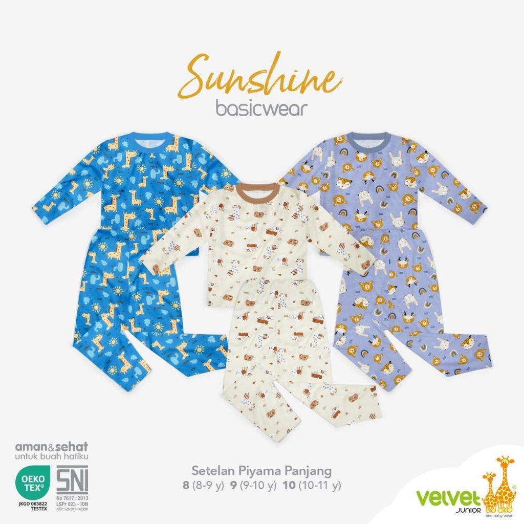 Velvet Junior Piyama basic size 2-10 ( isi 3 stel )