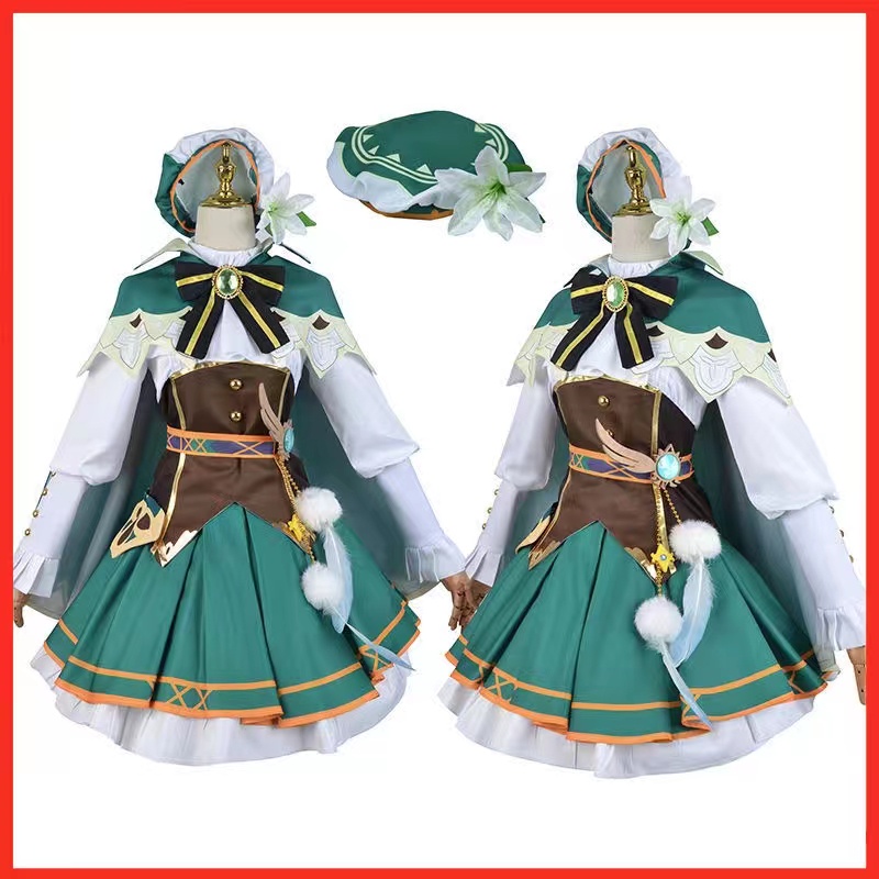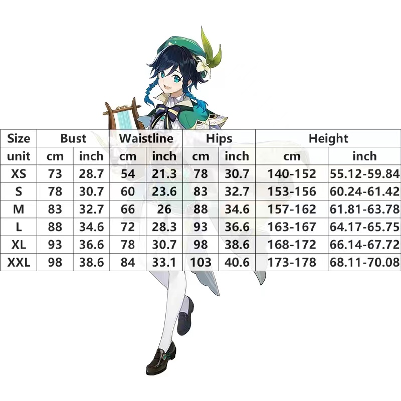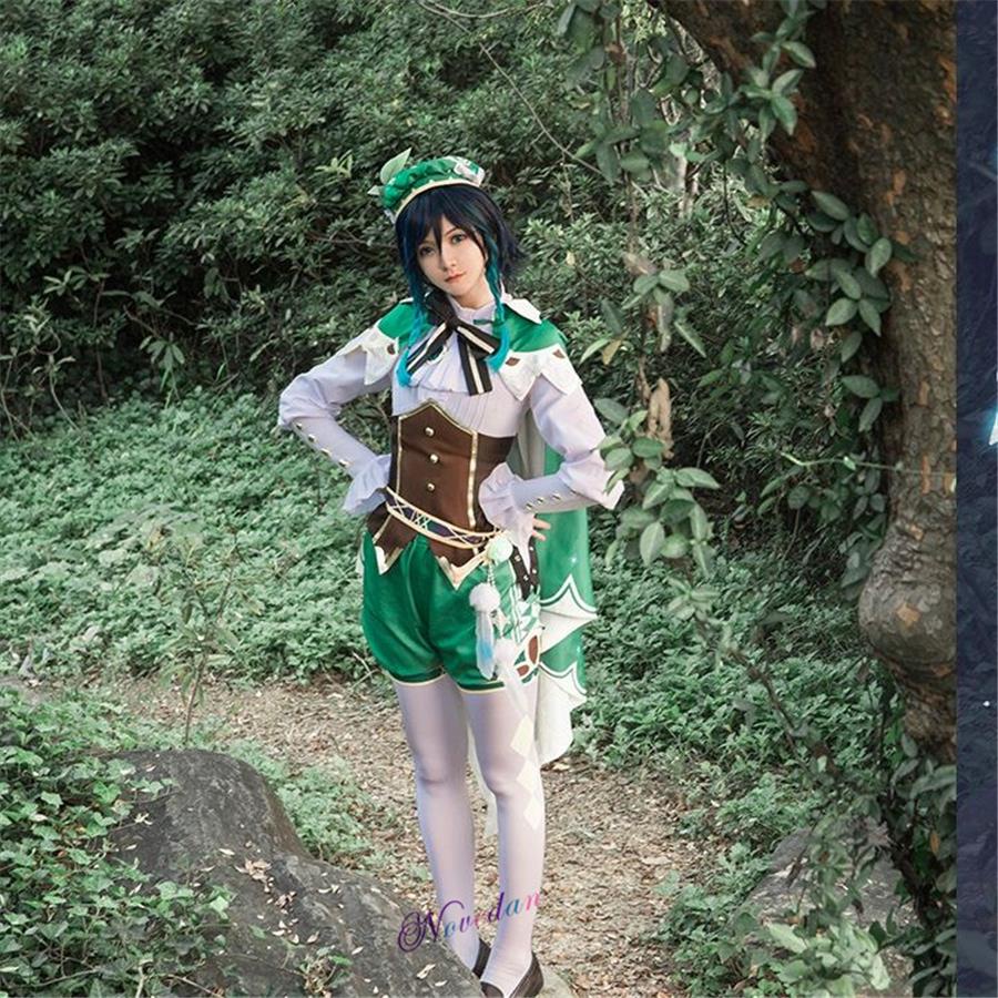 Venti Genshin Impact Cosplay Anime Genshin Impact Venti Cosplay Wig Women Halloween Costume Outfit Harp Prop