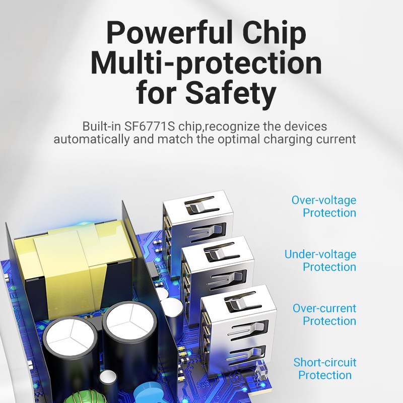 Vention Adaptor Charger USB Multiport USB-A for Apple 2.1A 5V