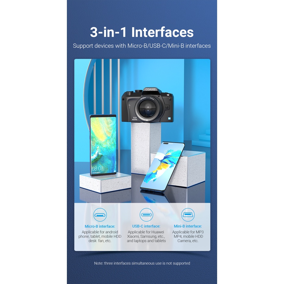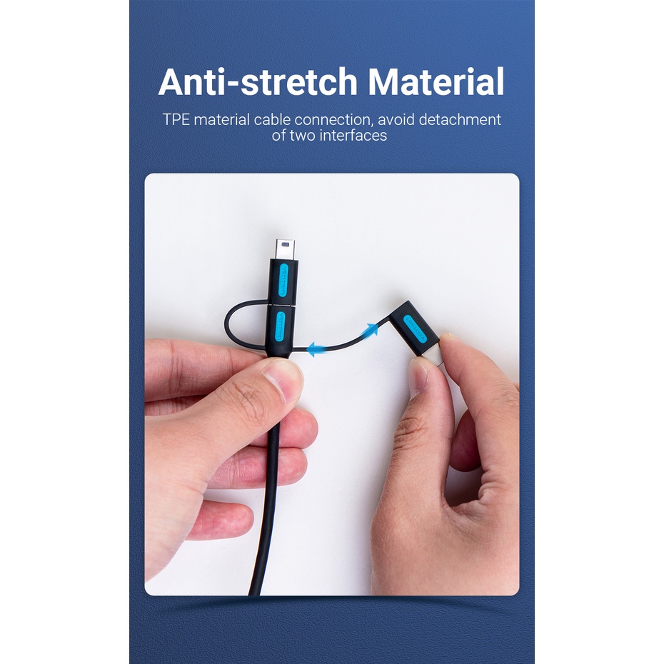Vention Kabel Charger Micro USB to Type C + Mini USB Multi USB 3in1