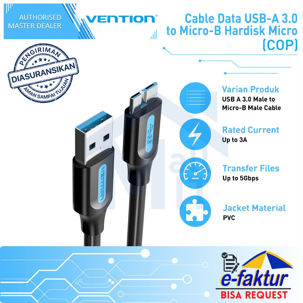 MALLIT VENTION Kabel Data Harddisk USB A 3.0 to USB B Micro USB C to USB B Micro SSD HDD 5GBPS COP CQA
