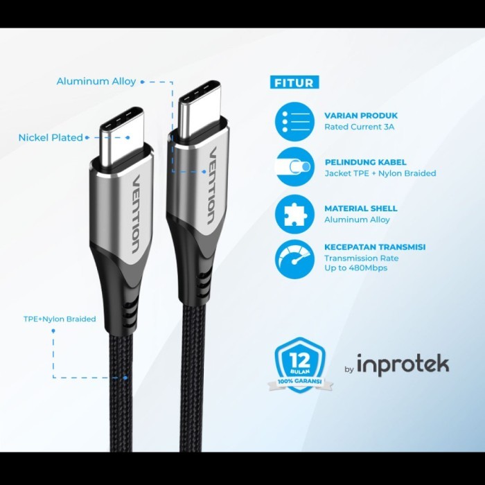 Vention Kabel Data Type C PD Fast Charging USB-C Power Delivery 3A-TAD