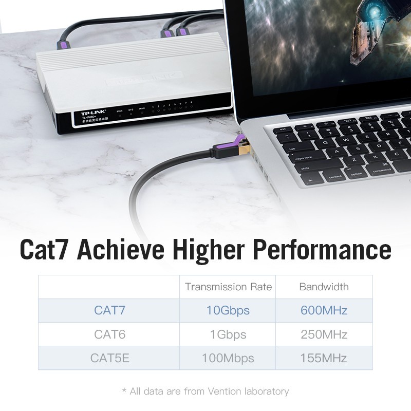 Vention Kabel LAN Ethernet Cat 7 High Speed 10Gbps Rj45 STP UTP Flat Gigabit Cat7 Cat.7 50CM 1M 1.5M 2M 3M 5M 8M 10M 15M 20M