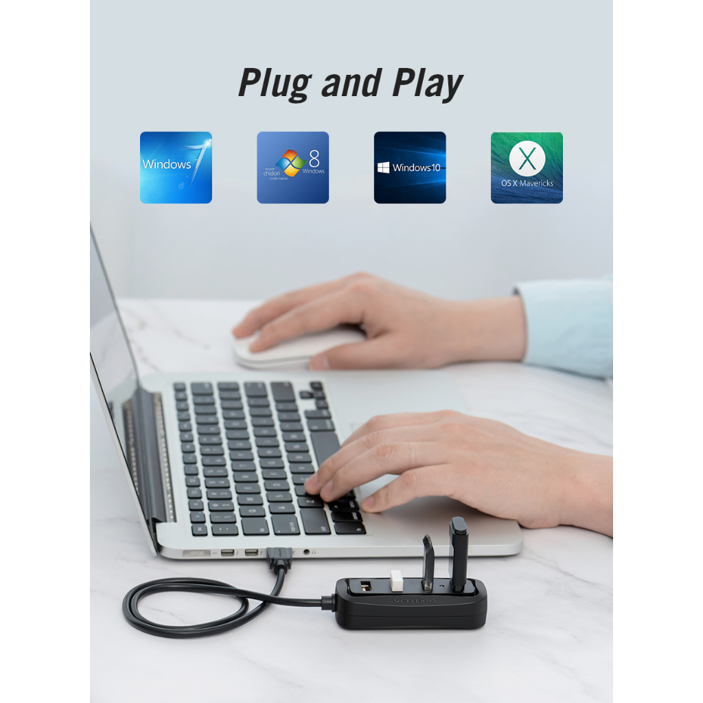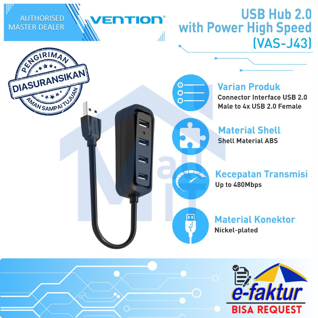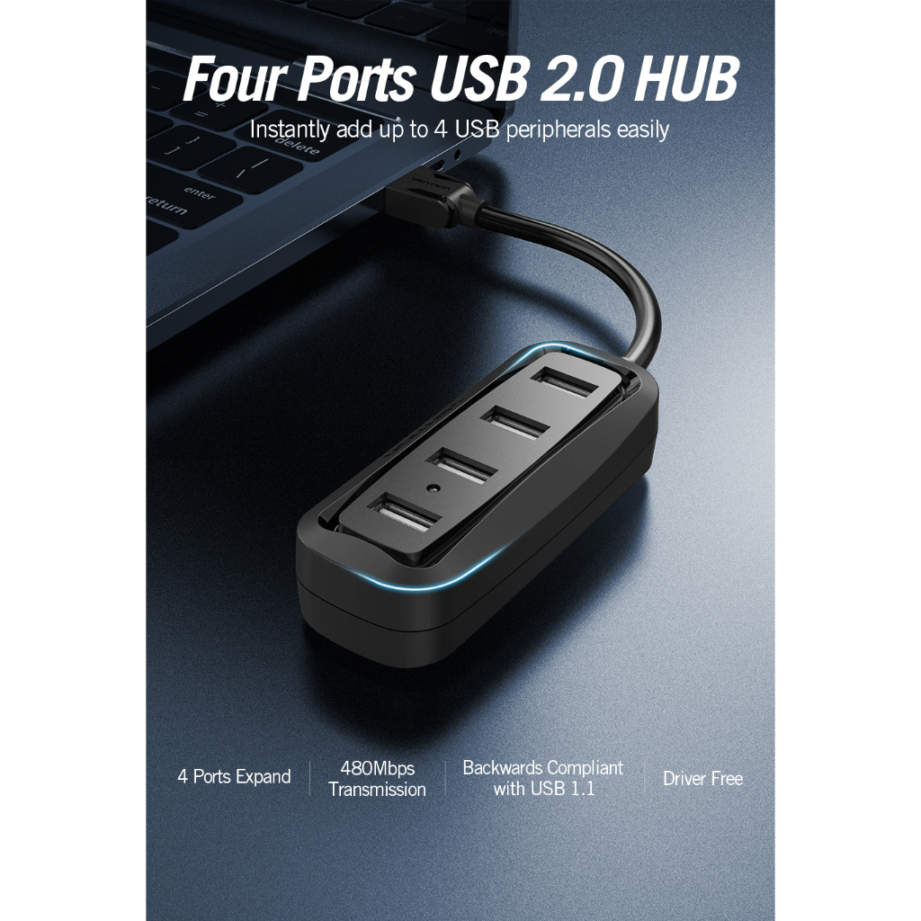 MALLIT VENTION USB Hub 2.0 with Power High Speed for Windows Mac Linux - VAS-J43