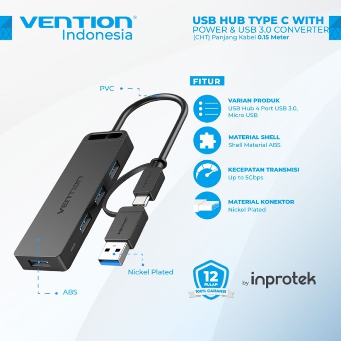 Vention USB Hub 2in1 Type C & 3.0 with Power for Windows Mac Linux CHT