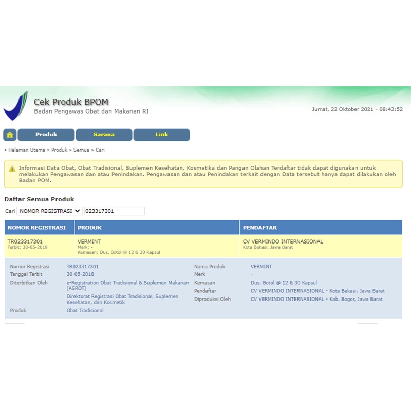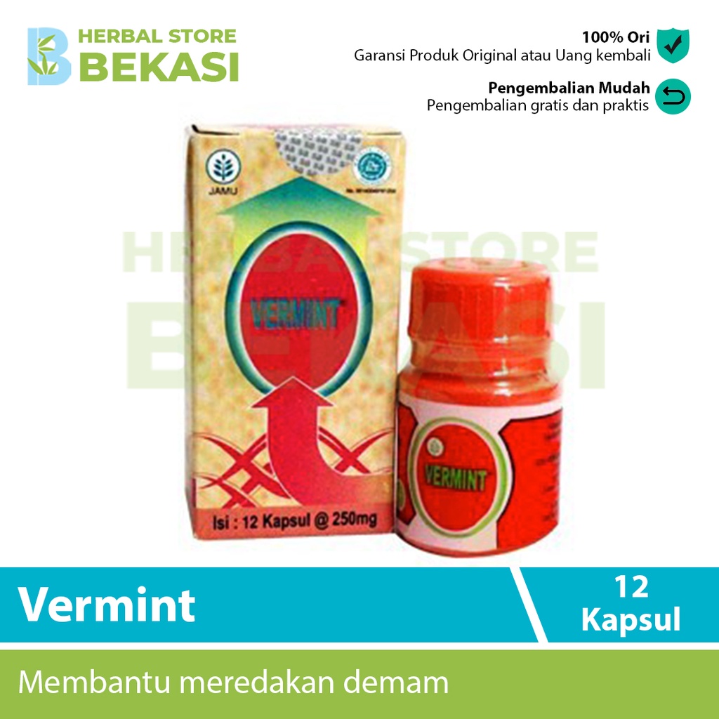 Vermint Kapsul Cacing Isi 12 Kapsul Asli Original BPOM Obat Penurun Panas Dan Demam Serta Tipes