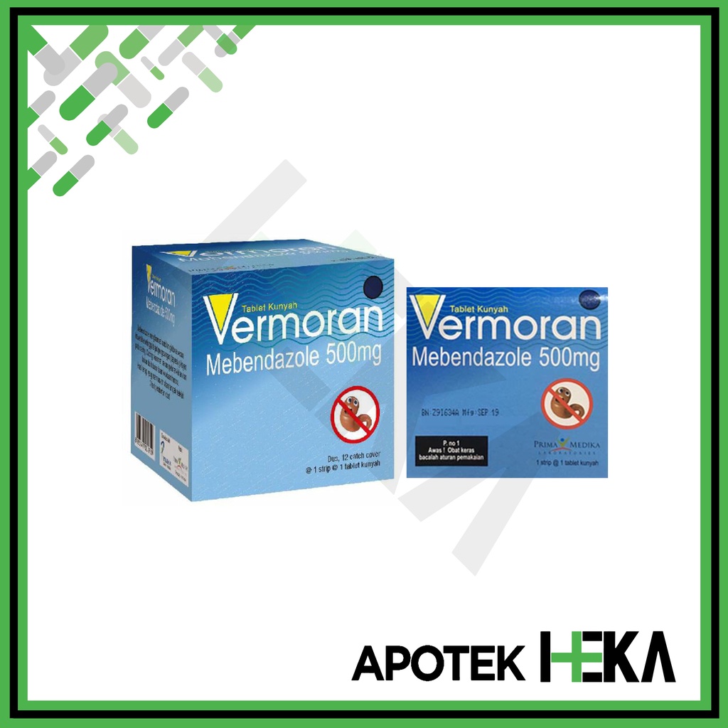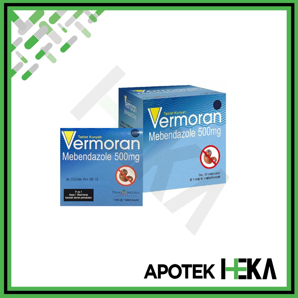 Vermoran 500 mg Box isi 12x1 Tablet - Mebendazole Obat Cacing