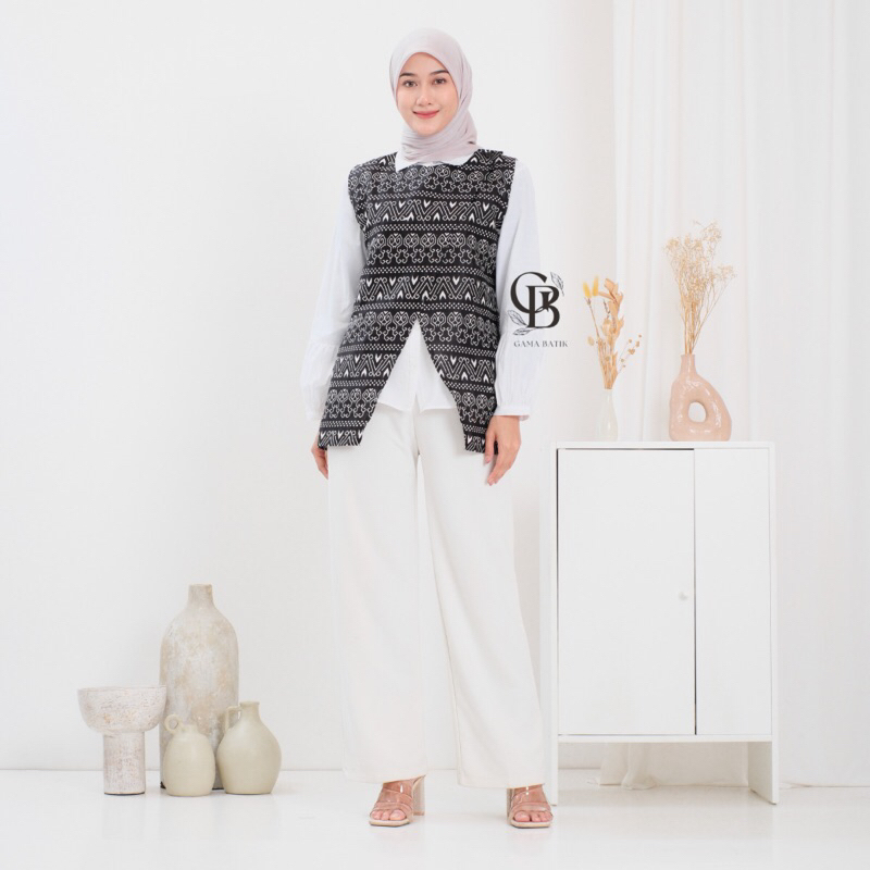 Vest Batik Wanita Rompi Batik Atasan Wanita Outer Batik Modern Vest kantor