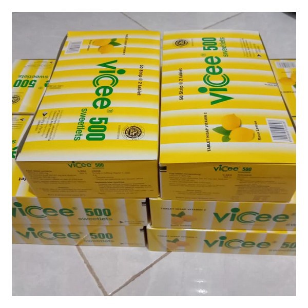 Vicee Lemon 1 strip isi 2 Tablet / Harga tercantum untuk 1 strip / Tablet Hisap Vitamin C / Rasa Lemon / Permen Vit C