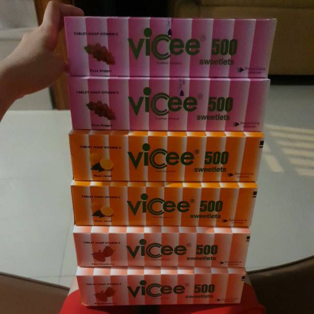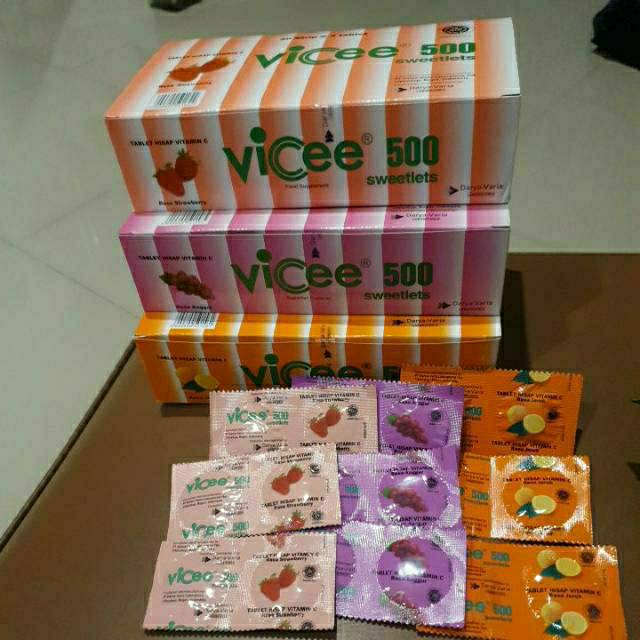 Vicee Vitamin C vitacimin tablet isap 500mg ( rasa LEMON / ANGGUR/STROBERI / JERUK) 50 strips / box