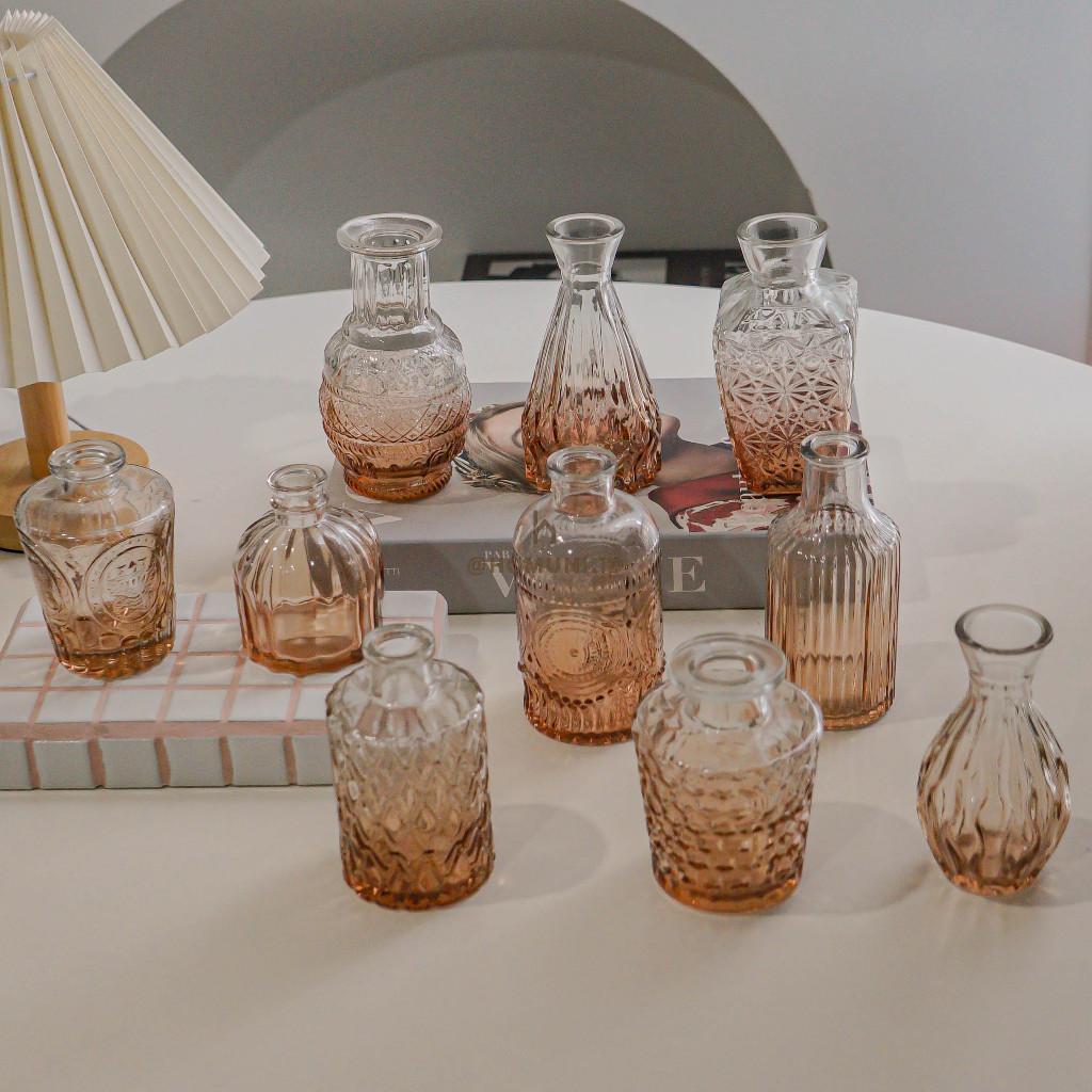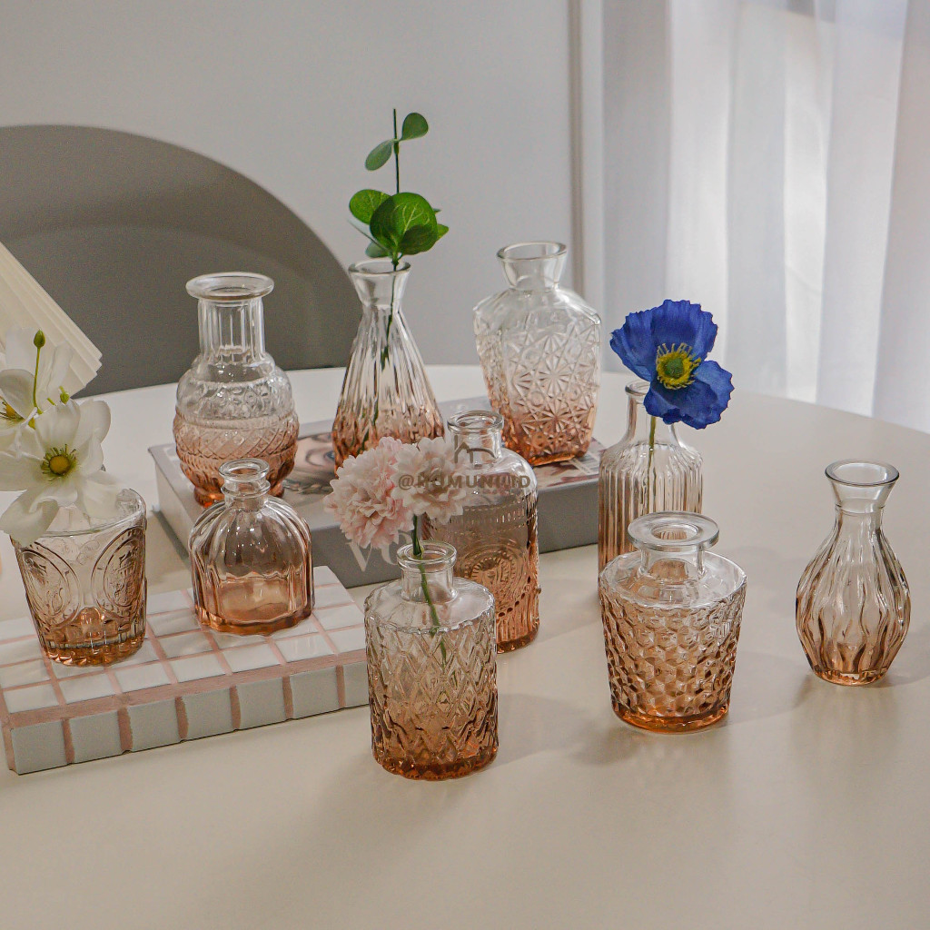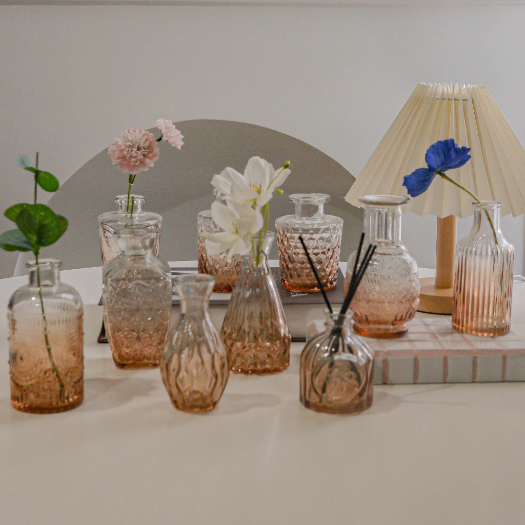 Victoria Ombre Vas Bunga Botol Kaca Estetik / Botol Disfuser Kaca Transparan/ Vas Kaca Dekorasi Minimalis/ Nordic Glass Bottle Gradation Flower Vase Aesthetic