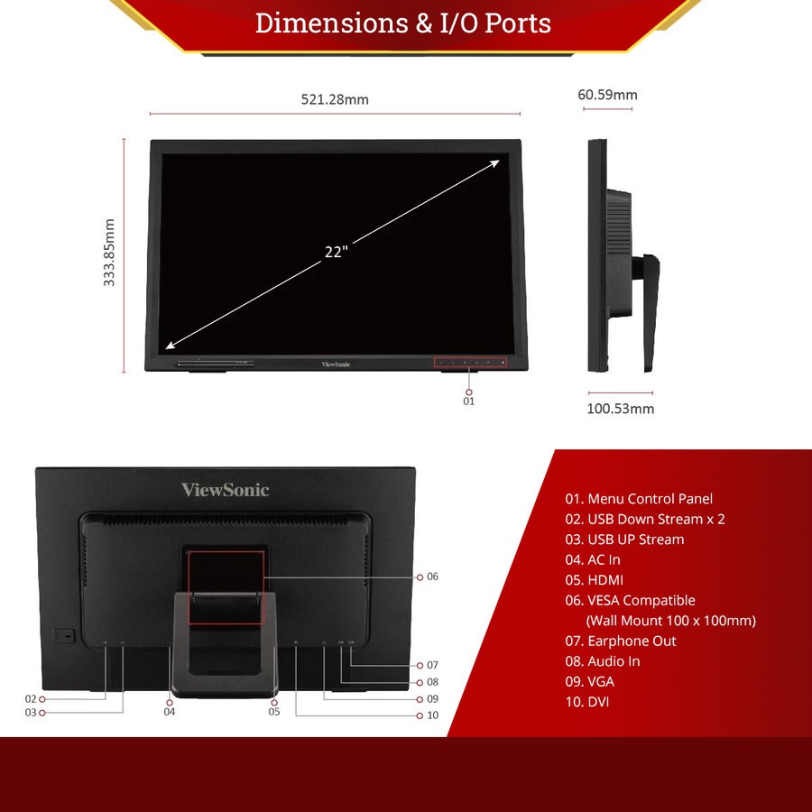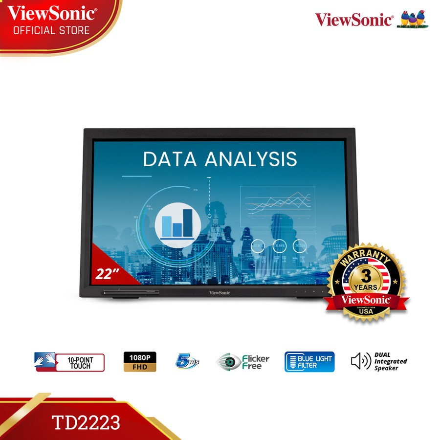 ViewSonic 22” IR Touch Monitor TD2223 10-Point Touch HDMI-VGA Resmi