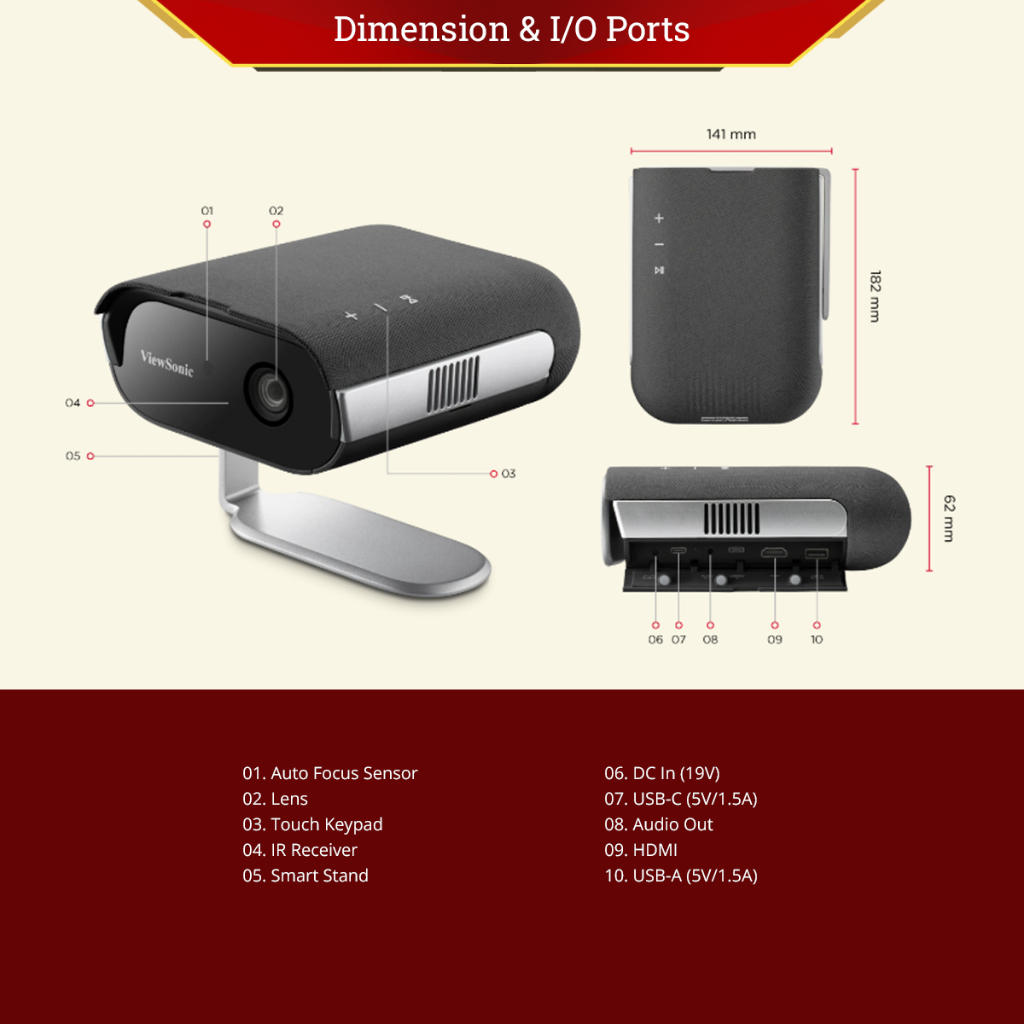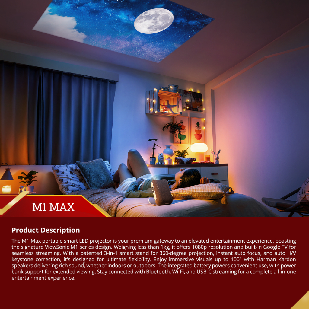 ViewSonic M1 MAX Google TV Portable Projector with Harman Kardon Speakers Mini Home Projector
