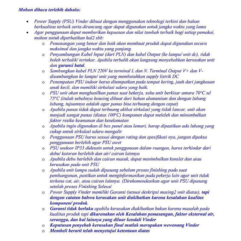 Vinder Power Supply Indoor 12V (3A 36W, 5A 60W, 10A 120W, 16A 200W, 20A 250W, 33A 400W)