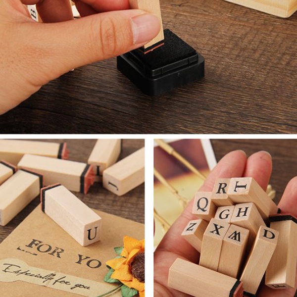 Vintage wooden box alphabet number stamp cap stempel huruf angka aesthetic retro diy jurnal scrapbook MK1306 MK1307